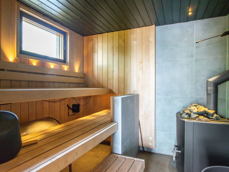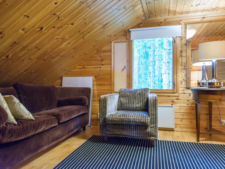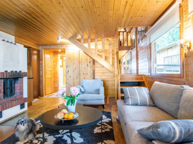 WI-FI. Wooden building 1985, renovated 2006, living room with double sofa bed, cot, downstairs bedroom with double bed, upstairs bedroom with double bed, sleeping loft, sauna, dressing room, washing room. Plot shielded from neighbours. Holiday home also suitable for two small families.