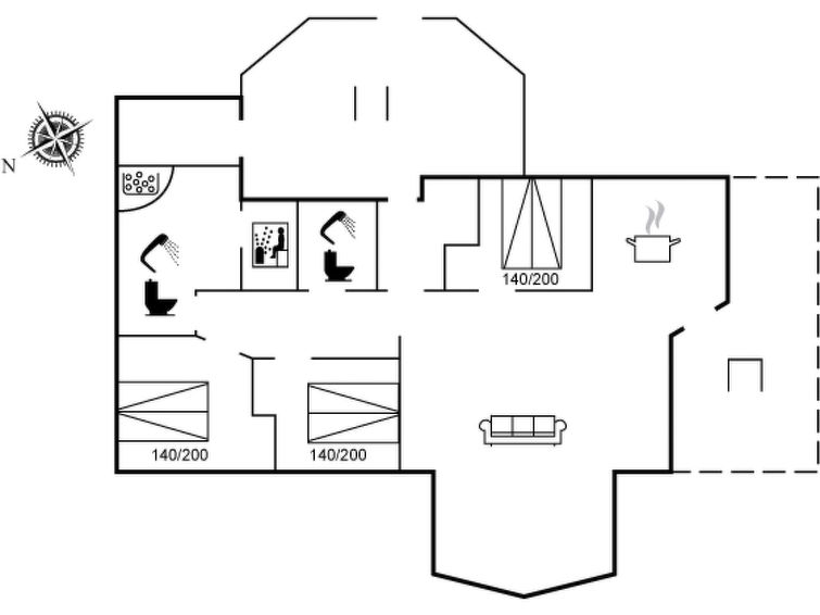 "Tjarko" - 150m from the sea in NW Jutland", 3 rom hus 104 m2. Passer for 6 voksne. Stue med, TV, radio og CD-spiller. 1 rom med, 1 dobbeltseng. 1 rom med, 1 dobbeltseng. 1 rom med, 1 dobbeltseng. Kjøkken (stekeovn, oppvaskmaskin, 4 keramiske kokeplater). 2 dusjer/WC, boblebad. Terrasse 20 m2, dekt. Utsikt av havet. Fasiliteter: Internett (trådløs LAN [WLAN]). Vennligst merk: røykfri bolig.