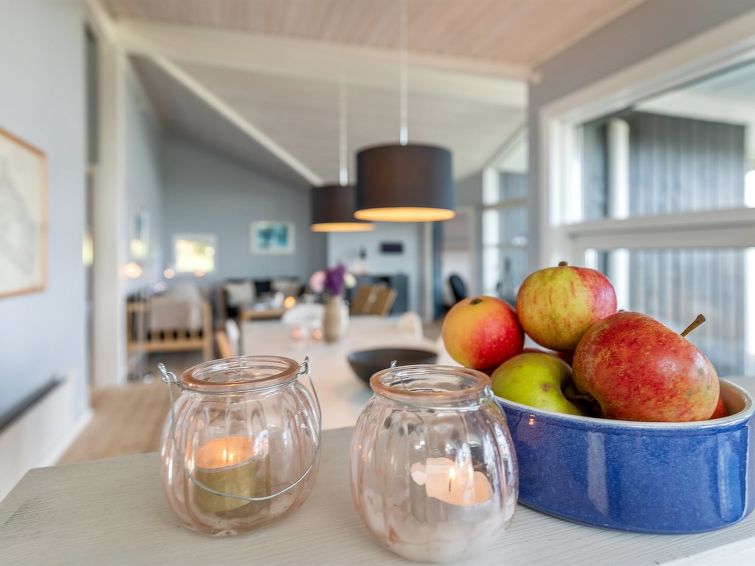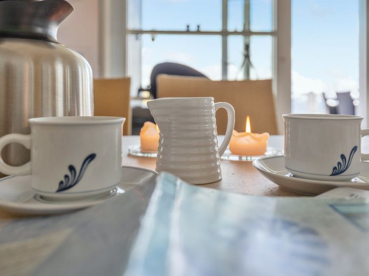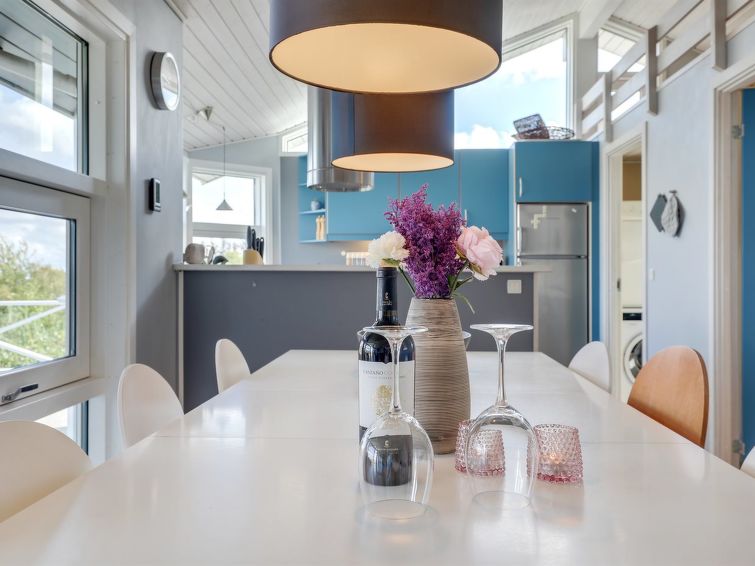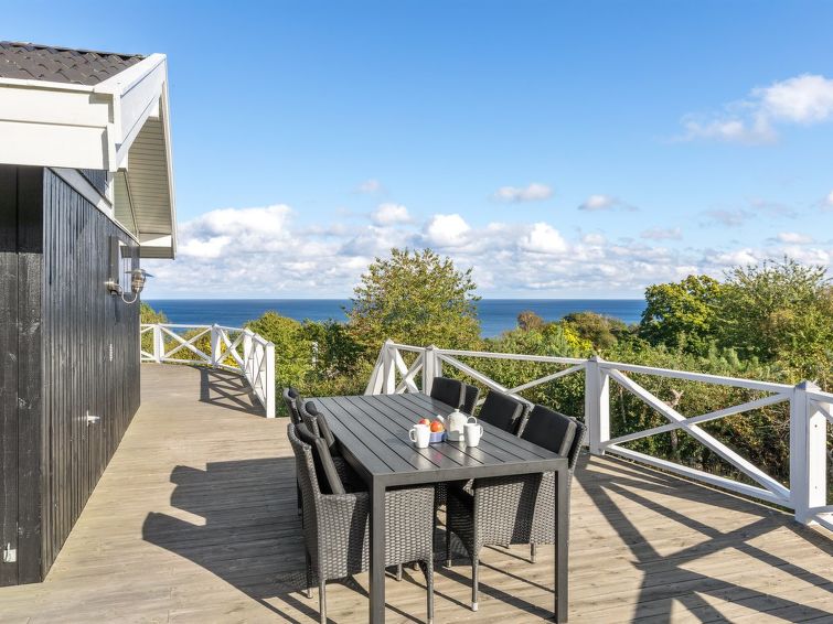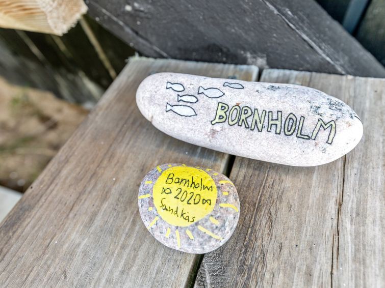 "Tjelle" - 300m from the sea in Bornholm", 4 rom hus 99 m2. Passer for 8 voksne + 2 barn. Stue med, TV, radio, CD-spiller, stereoanlegg og DVD. 1 rom med, 1 dobbeltseng. 1 rom med, 2 x 2 køysenger. Studio 1 rom med med, 1 dobbeltseng. Kjøkken (stekeovn, oppvaskmaskin, 4 induksjonskomfyr, mikrobølgeovn, frys). Dusj/WC. Terrasse 14 m2, dekt. Utsikt av havet. Fasiliteter: høy barnestol. Internett (trådløs LAN [WLAN]). Vennligst merk: røykfri bolig.