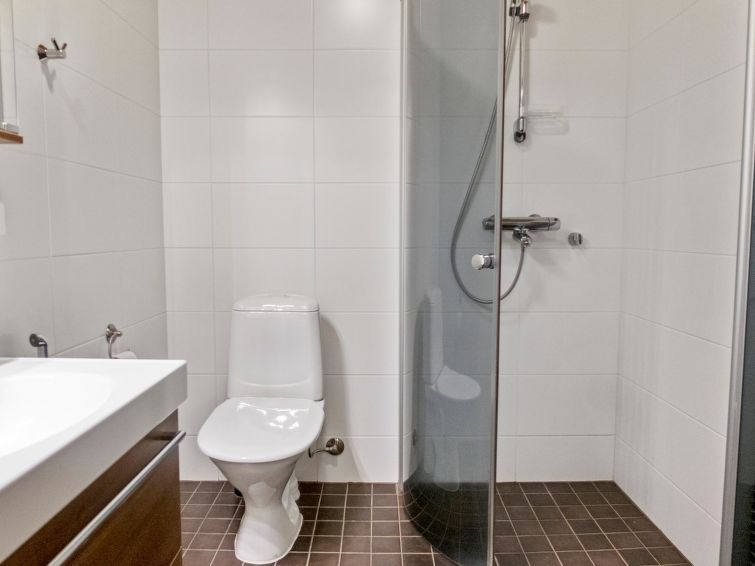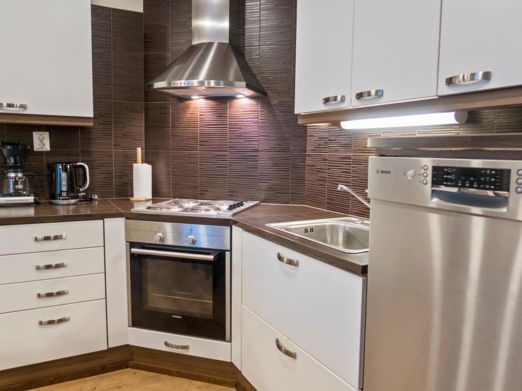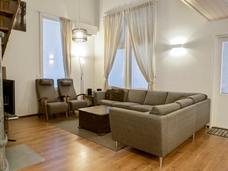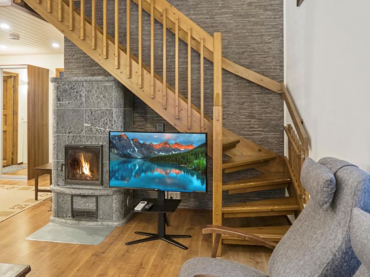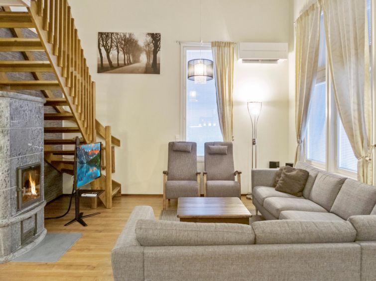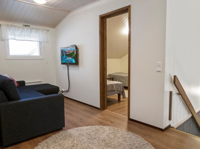 This semidetached house located in a silent place in Vuokatti. Completed in 2010. Living area 114 m²; combined living room & kitchen, sauna (electric heating), washroom with two showers and toilet. 4 bedrooms: three bedrooms with twinbed and one bedrooms with separate beds. Two extra beds in bedrooms and one sofabed (140 cm) for 1-2 pers, total bed places for 10+2. Shower/toilet also on the 2nd floor.