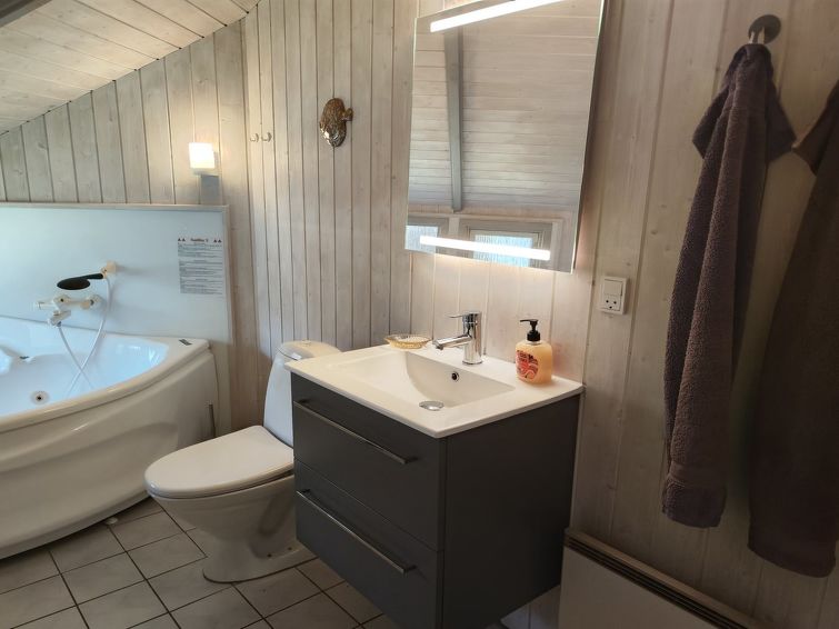 "Torben" - 10km from the sea in Western Jutland", 3 rom hus 89 m2. Passer for 6 voksne. Stue med, TV, radio og CD-spiller. 1 rom med, 1 dobbeltseng. 1 rom med, 1 dobbeltseng. 1 rom med 2 senger. Kjøkken (stekeovn, oppvaskmaskin, 4 keramiske kokeplater, mikrobølgeovn, frys). Dusj/WC, boblebad. Terrasse 20 m2, dekt. Fasiliteter: Internett (trådløs LAN [WLAN]). Vennligst merk: røykfri bolig. Max kjæledyr / hund tillatt 1 kjæledyr / hund tillatt.