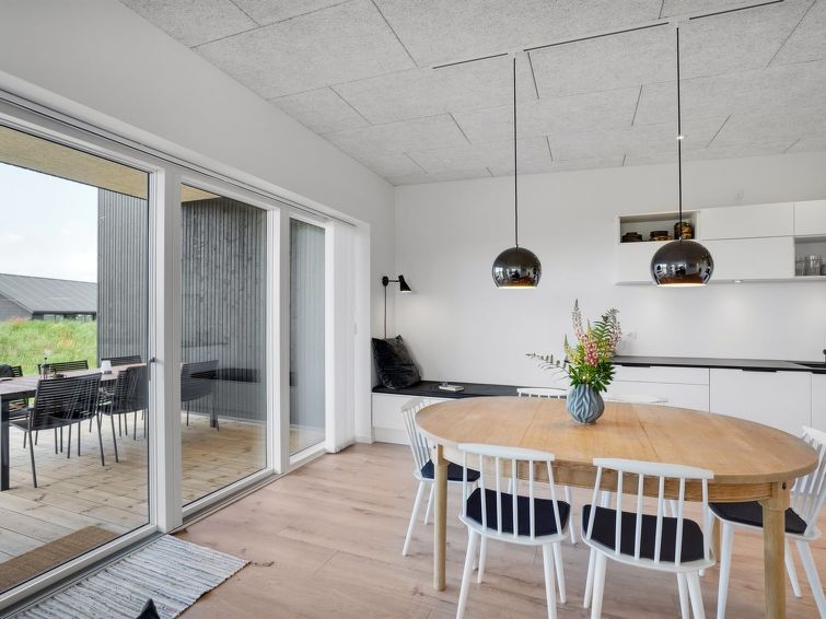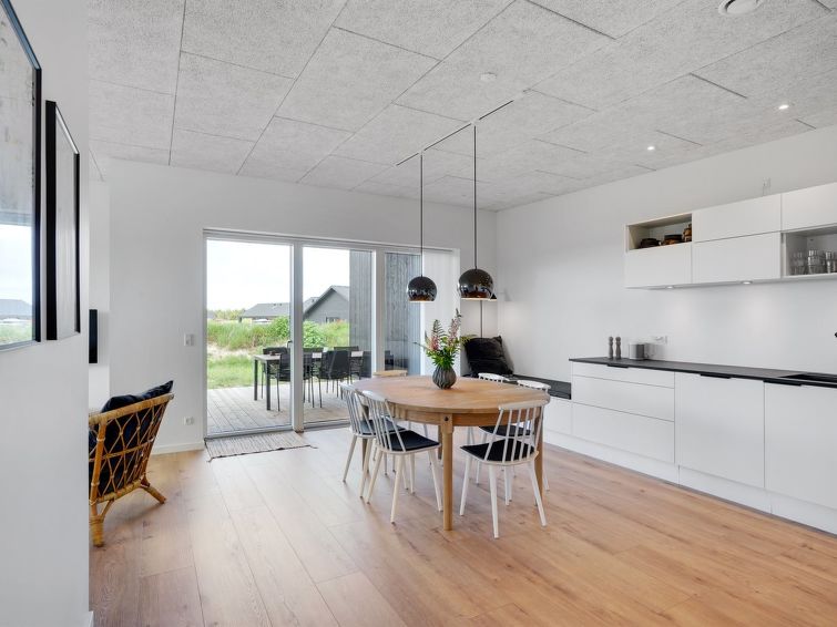 "Trpana" - 1.6km from the sea in NW Jutland", 3 rom hus 98 m2. Passer for 6 voksne + 1 barn. Stue med, TV. 1 rom med, 1 dobbeltseng. 1 rom med, 1 dobbeltseng. 1 rom med, 1 dobbeltseng. Kjøkken (stekeovn, oppvaskmaskin, 4 induksjonskomfyr, mikrobølgeovn, frys). Dusj/WC. Terrasse 35 m2, dekt. Fasiliteter: høy barnestol barneseng (ekstra). Internett (trådløs LAN [WLAN]). Vennligst merk: røykfri bolig.