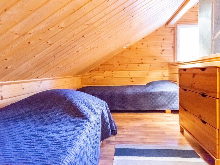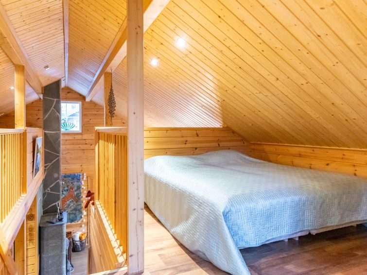 53 km north from Kemijärvi. Log cabin built in 2008. Living room/kitchen, two bedrooms with double beds, toilet, washroom + toilet, sauna (electric stove), utility room and open porch. Upstairs open loft with 4 beds.