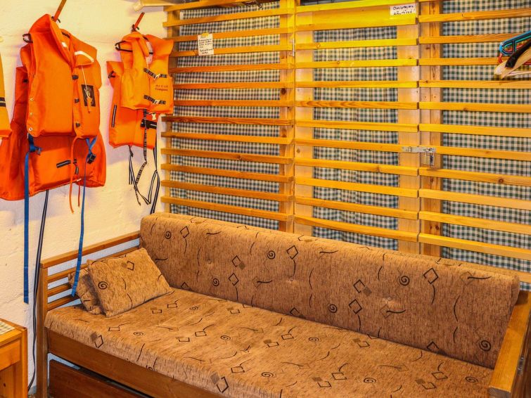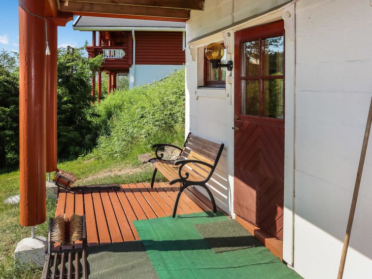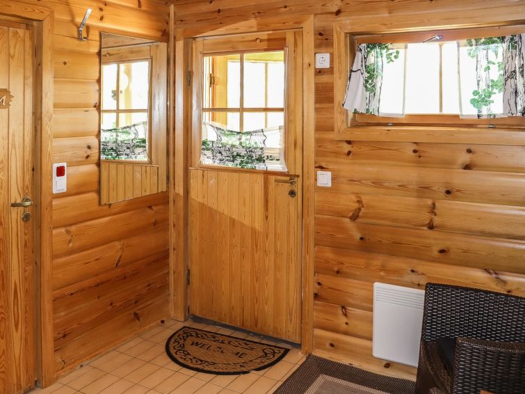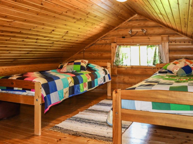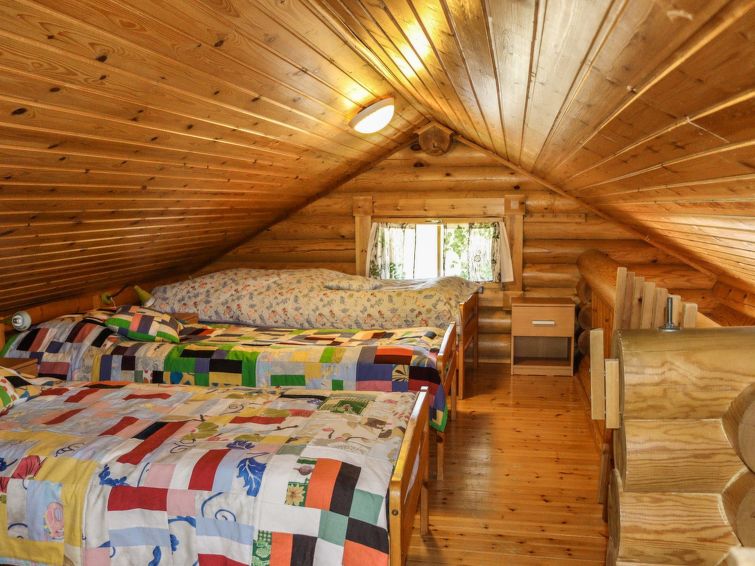 2 bedrooms, loft (steep stairs), sauna, shower room, separate toilet downstairs (steep stairs), dressing room, balcony, terrace, vestibule, storage, fireplace and firewood. Double beds in both bedrooms, 6 beds on the loft. High chair for babies, baby travel bed, boat and an outdoor grill in summer use, sandbox and swing for children.