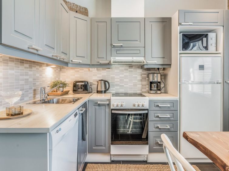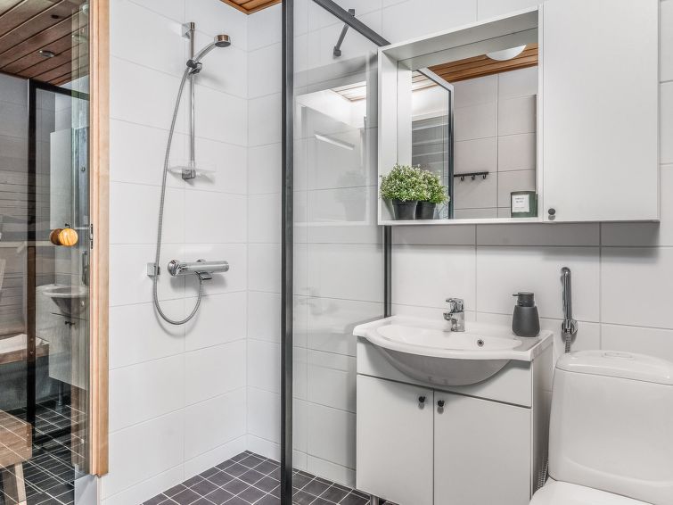 The cabin boasts a delightful living room/kitchen, perfect for preparing delicious meals with your friends. Relax in the cabin's electric sauna after a day of activities and enjoy perfect relaxation.