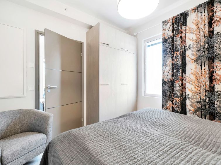 The apartment is ideal for a couple or small family. The elegant bedroom has double bed and sofa bed in the living room can be opened as two extra beds. The compact two-room apartment also has a living room/kitchen and living room, as well as washroom and sauna. The spacious balcony offers wonderful facilities to enjoy your morning coffee, for example.