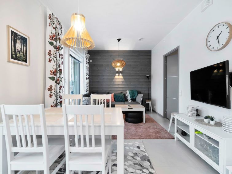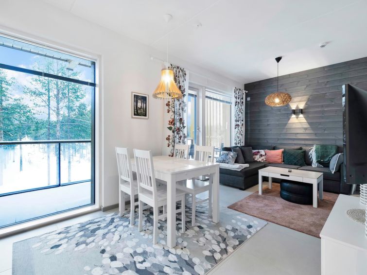 In this fresh and practical apartment you will spend a successful holiday. Both, outdoor activities and services of Levi tourist center are just around the corner. Own car is not necessary while making holiday in Tunturinlaita, since distance to the ski slopes and numerous services of Levi tourist center is walkable in a minute. The cross-country ski trail and the outdoor trail (during snow-free season) literally run next to the apartment.