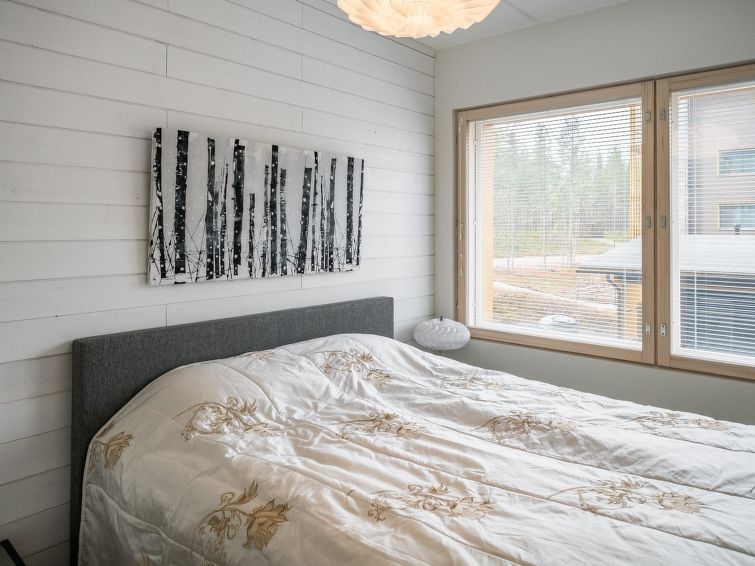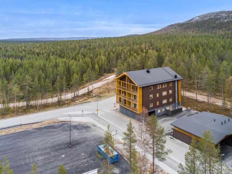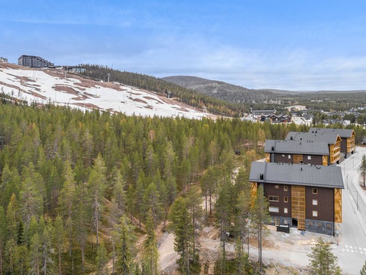 Tunturinlaita D4 is an elegant alpine style apartment in the center of Levi and in the middle of nature. The apartment on the second floor is a great choice for both couples and families. From the balcony of the apartment you can admire the beautiful nature of Lapland, skiers passing by or skiers cooling off on the front slope.