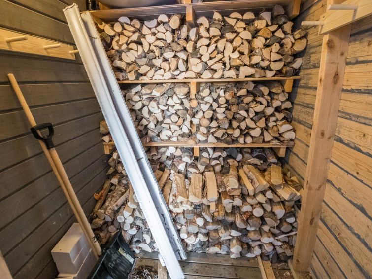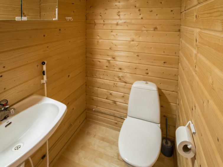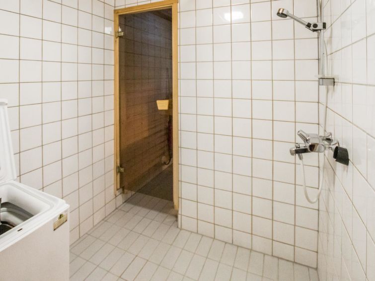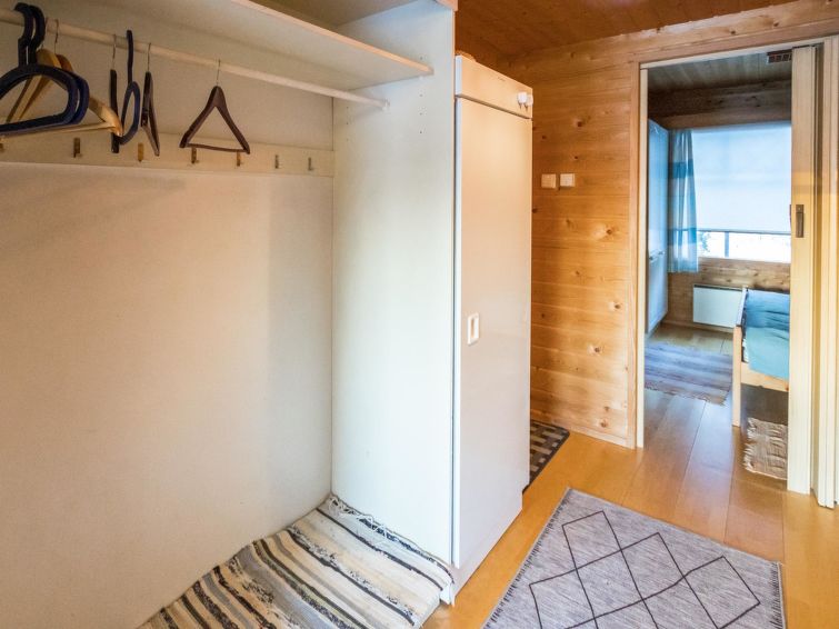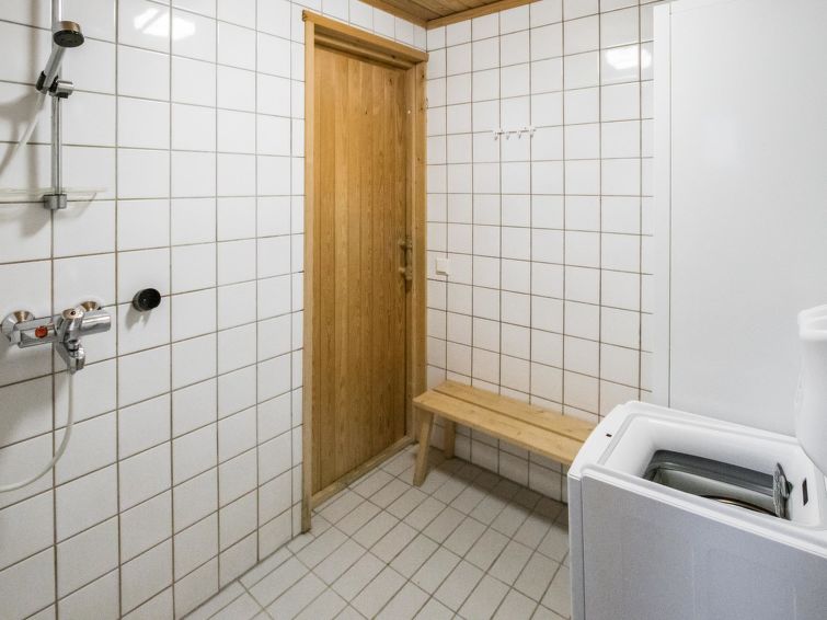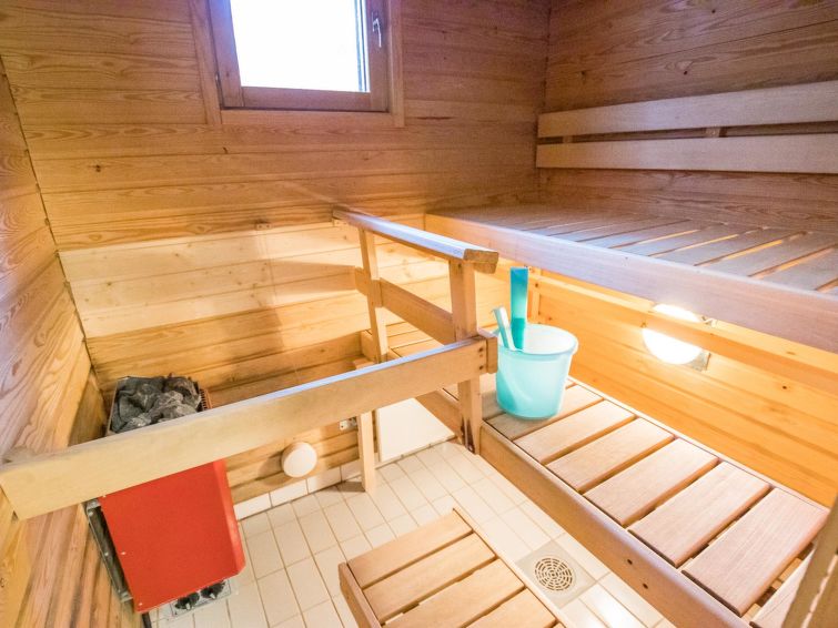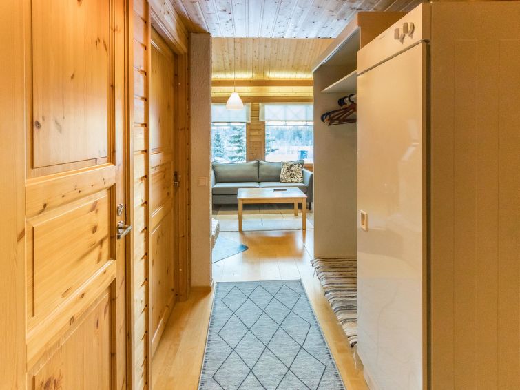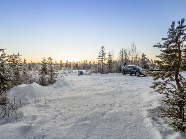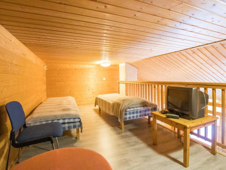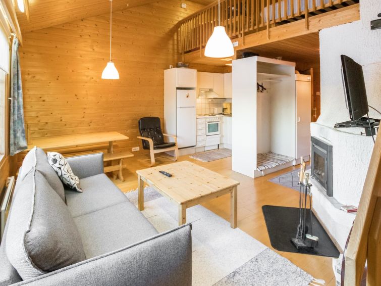 A row house apartment located 165 km north of Rovaniemi, in Ylläsjärvi village, near new scenic road. Built 1989. Combined living room kitchen, bedroom with double bed, loft (12 m²) 2 beds and sofa bed, electric sauna, washing room, toilet. Final cleaning is included in the price. Electric cars cannot be charged at the cottage.