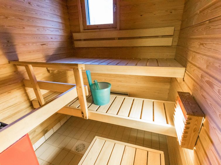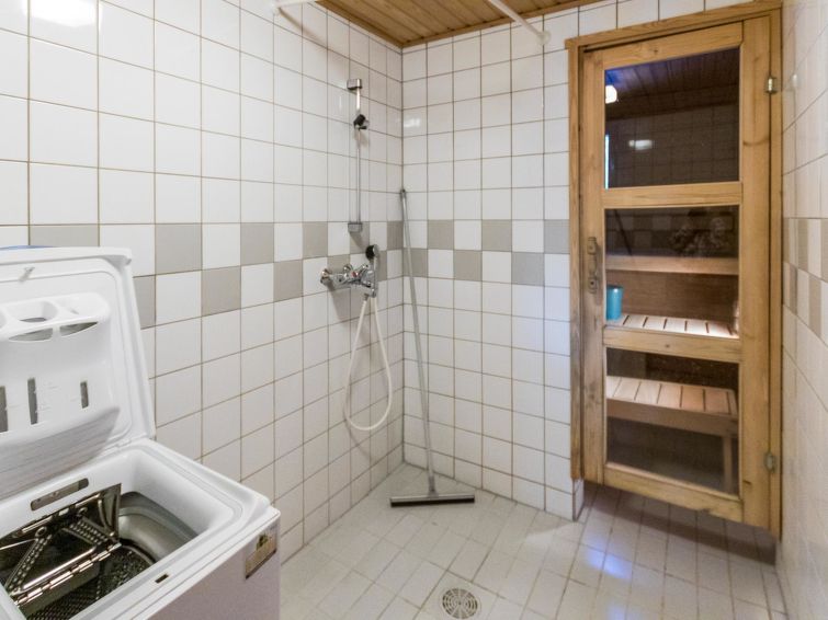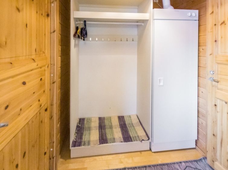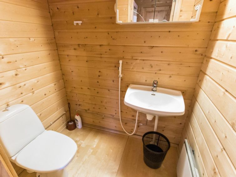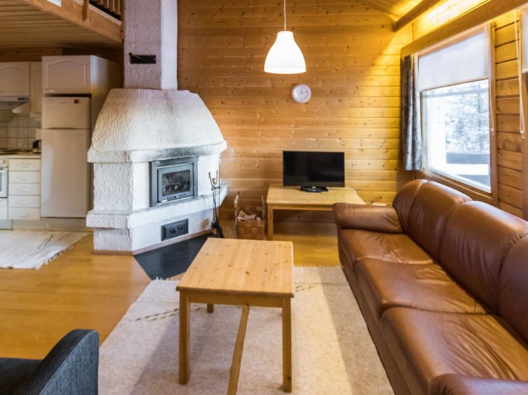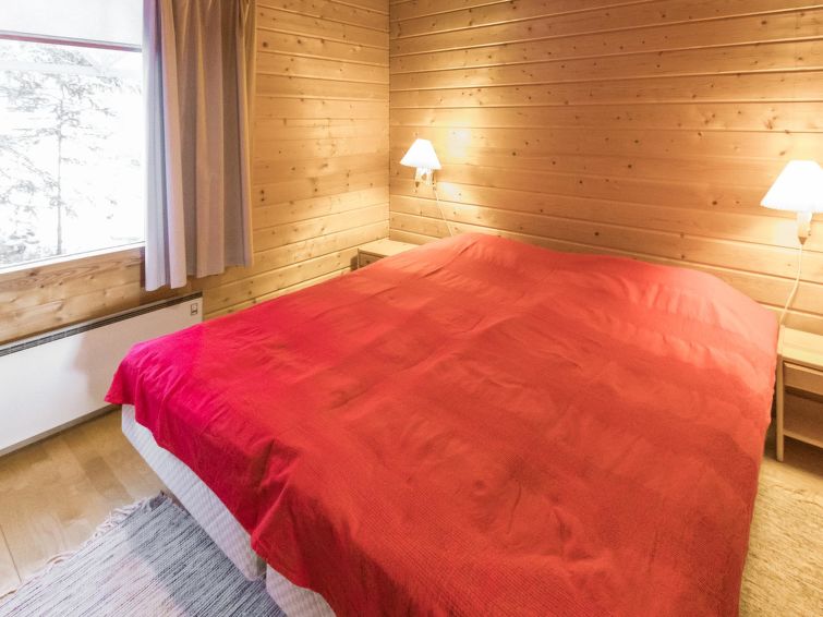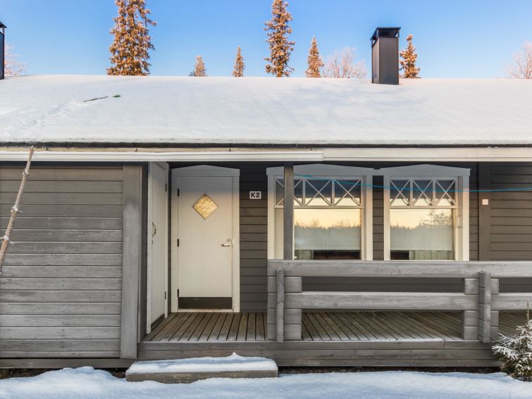 A row house apartment 165 km north of Rovaniemi, in Ylläsjärvi village, near new scenic road. Built 1989. Combined living room kitchen, bedroom doublebed, loft (12 m2) 2 beds and sofa bed, electric sauna, washing room, toilet. Final cleaning is included in the price. Electric cars cannot be charged at the cottage.