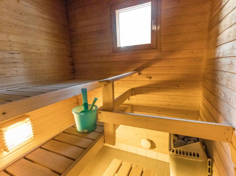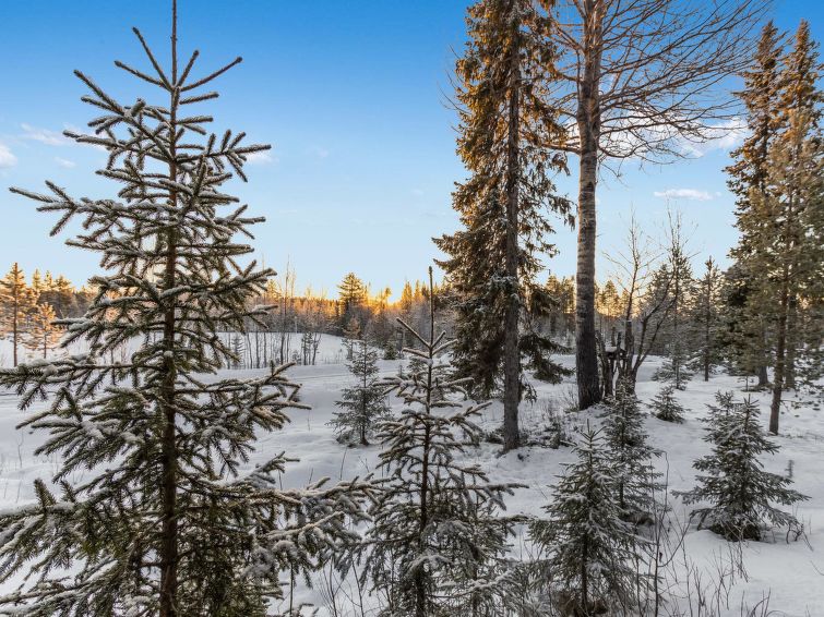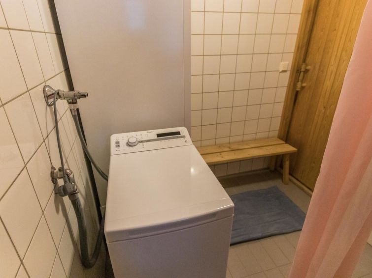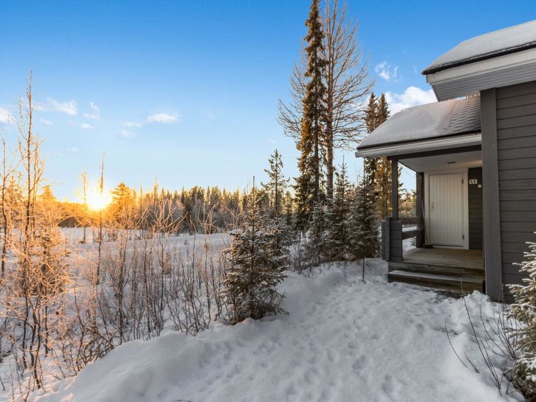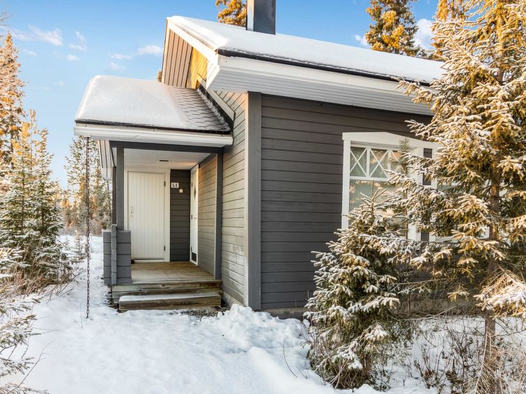 A row house apartment located 165 km north of Rovaniemi, in Ylläsjärvi village, near new scenic road. Built 1989. Combined living room kitchen, bedroom doublebed, loft (12 m²) 2 beds and sofabed, electric sauna, washing room, toilet.