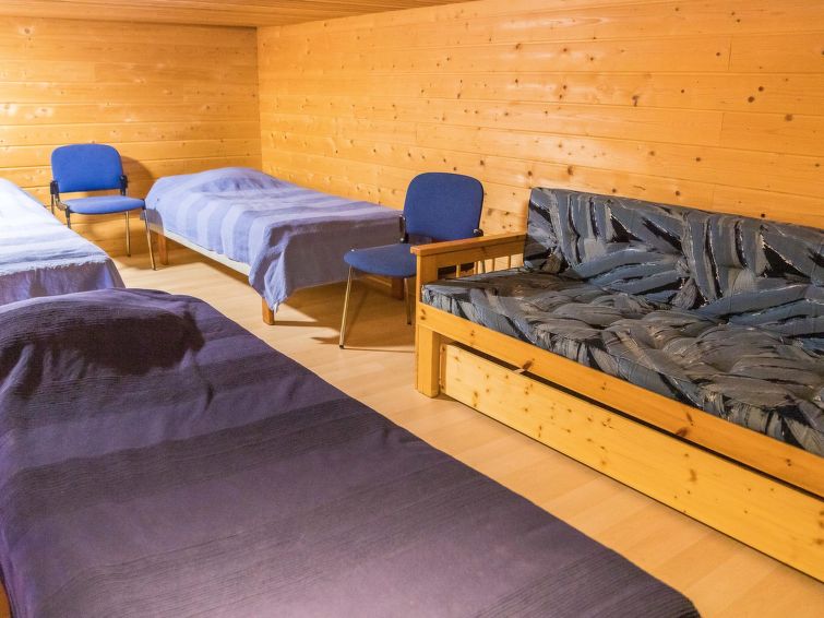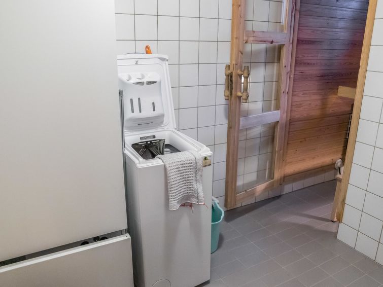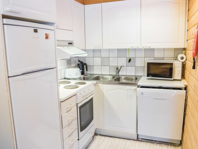 A row house apartment located 165 km north of Rovaniemi, in Ylläsjärvi village, near new scenic road. Built 1989. Combined living room kitchen, bedroom 2 beds, loft (12 m²) 2 beds and doublebed, electric sauna, washing room, toilet.