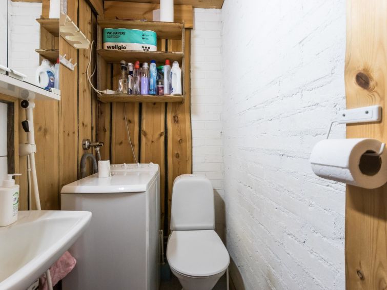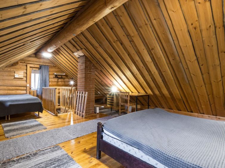 160 km north of Rovaniemi, not on a lake shore. Log cottage 1997, living room/kitchen, bedroom double bed, upstairs double bed and 3 beds, steep stairs to upper floor, washroom, dressing room, sauna (electric stove), glassed-in terrace. Downstairs 50 m² and upstairs 22 m². Cottage located in Lainio area at forest edge, very peaceful location. Freezer box inside fridgerator. Plot in natural state. Fishing possibility at river Lainiojoki, distance 1,5 km. Good hiking possibilities in surrounding areas. Snowmobile trail 200 m. Lainio snow village and Krouvi restaurant 1.6 km, Kittilä 26 km, Levi's southern hills 35 km. Ski trails 100 m (starting week 8 ->).