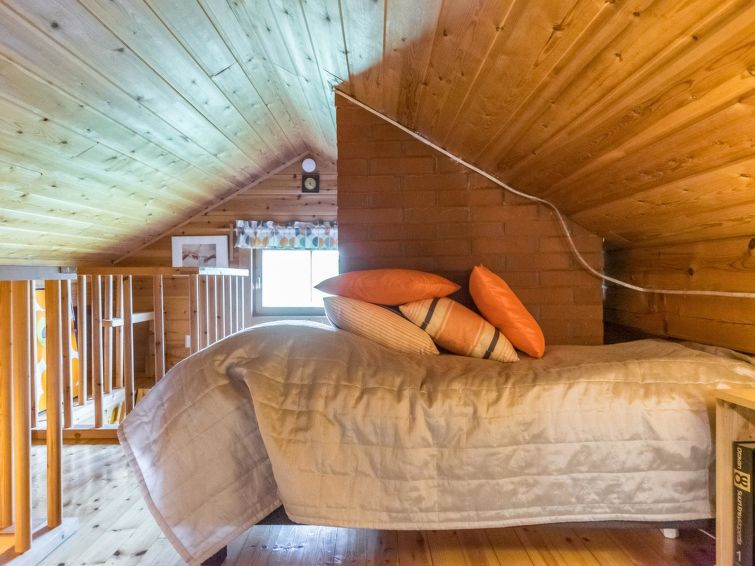 Log cottage 1987, Renovated spring 2021. living room/kitchen sofa bed, sleeping alcove with door double bed (8 cm thick maddress pad), sleeping loft with 2 beds, washroom, sauna, open porch. Cottage is heated mainly by air source heat pump. Log cottage surrounded by fields, level plot, suitable for family. Shore suitable for children.
