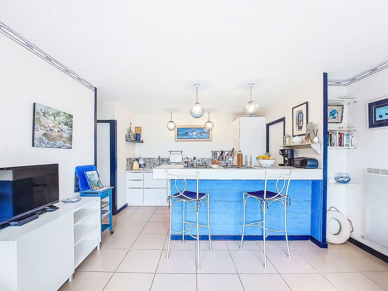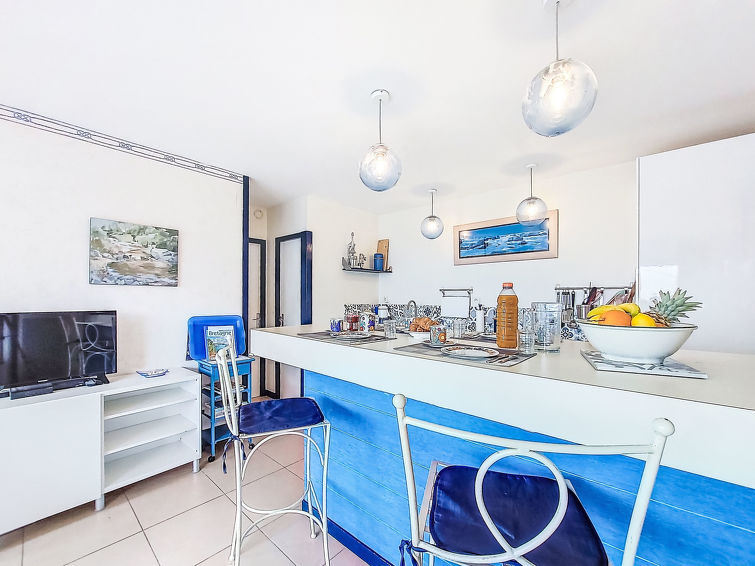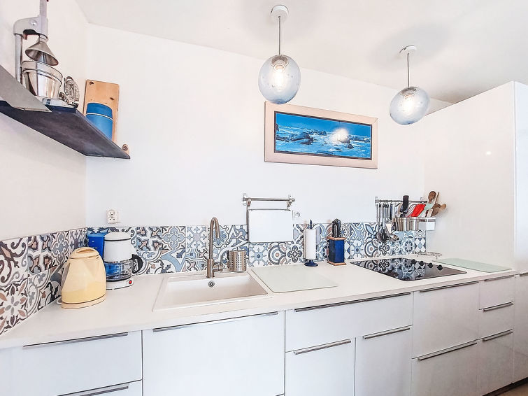 4 rom hus 60 m2, beliggenhet mot sør. Vakkert møbler: stue 25 m2 med panoramavindu med, TV (flatskjerms TV). Utgang til terrassen. 1 rom 10 m2 med, 1 dobbeltseng (140 cm, lengde 190 cm), motoriserte persienner. 2 små barnerom, hvert rom med 1 seng (90 cm lengde 190 cm). Kjøkkenkrok (miniovn, oppvaskmaskin, 4 keramiske kokeplater, brødrister, vannkoker, mikrobølgeovn, frys, elektrisk kaffemaskin) med bar. Dusj, sep. WC. El-oppvarming. Terrasse 20 m2, beliggenhet mot sør. Terrassemøbler, grill. Utsikt av havet og viken. Fasiliteter: vaskemaskin, strykejern. Vennligst merk: røykfritt hus. Max kjæledyr / hund tillatt 1 kjæledyr / hund tillatt. Røykvarsler.