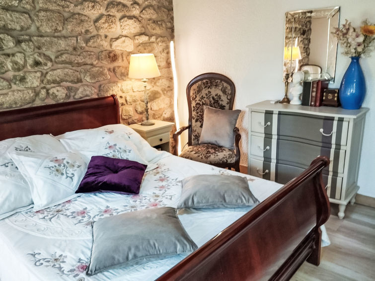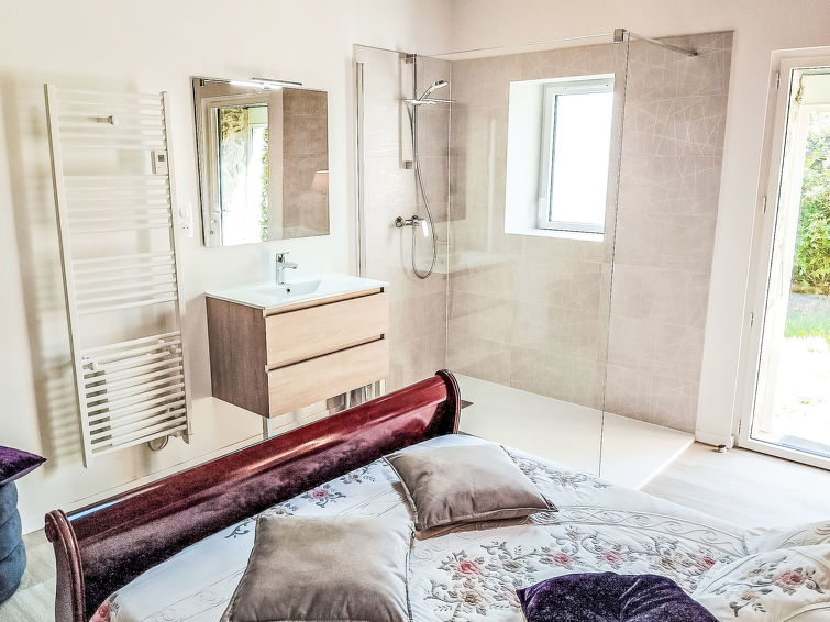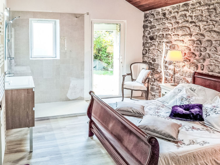 5 rom hus 150 m2. Komfortabelt møbler: stue/spisestue med, åpen peis, spisebord og TV (flatskjerms TV), stereoanlegg og DVD. 1 rom med, 1 dobbeltseng (1 x 140 cm, lengde 190 cm), vaskeservant, separat WC, bad/dusj og dobbel servant. Utgang til hagen. Åpent kjøkken (4 kokeplater, stekeovn, oppvaskmaskin, mikrobølgeovn, frys, elektrisk kaffemaskin, Internet(Senseo), ekstra). øverste etasje: 1 rom med, 1 dobbeltseng (140 cm, lengde 190 cm). 1 rom med, 1 dobbeltseng (1 x 140 cm, lengde 190 cm). 1 rom med skråtak med 2 senger (90 cm lengde 190 cm). Bad, sep. WC. El-oppvarming. Terrasse. Terrassemøbler, grill. Vakker utsikt av landskapet. Fasiliteter: vaskemaskin, tørketrommel, strykejern, høy barnestol barneseng, hårføner. Internett (trådløs LAN [WLAN], gratis).
