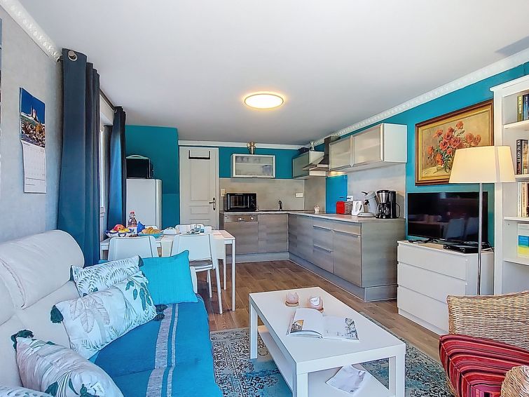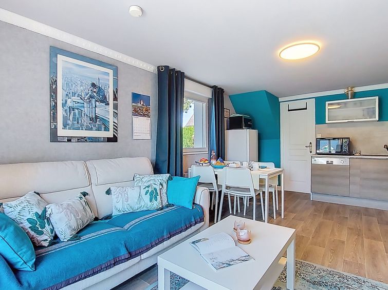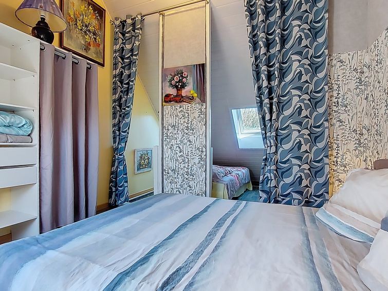 "Ty-Rozen (LOQ219)", 3 rom halvpart av tomannsbolig 40 m2 på 2 etasjer. Passer for 2 voksne + 1 barn. Praktiskt og koseligt møbler: kjøkken/stue (oppvaskmaskin, 4 keramiske kokeplater, brødrister, vannkoker, elektrisk kaffemaskin, kombinert mikrobølgeovn) med, spisebord og satelit-TV. Utgang til terrassen. Dusj/WC. El-oppvarming. øverste etasje: gjennomgangsrom med skråtak med takvindu med, 1 dobbeltseng (160 cm). 1 åpent rom med skråtak med takvindu med 1 seng. Liten terrasse. Terrassemøbler, grill (flyttbar), liggestoler (2), sitteplass. Fasiliteter: vaskemaskin, høy barnestol. Internett (trådløs LAN [WLAN], gratis). Vennligst merk: røykfri bolig. Kjæledyr / hund tillatt 1 kjæledyr / hund tillatt. Røykvarsler. Ingen innvendige tilkoblingsdører mellom separate boliger.