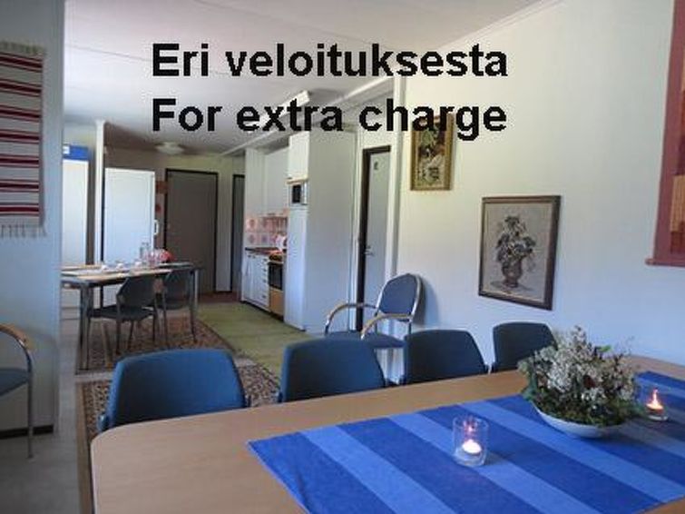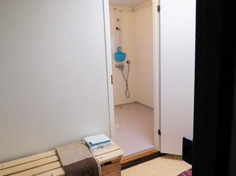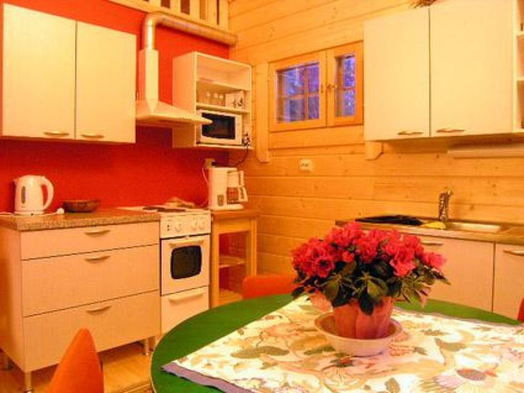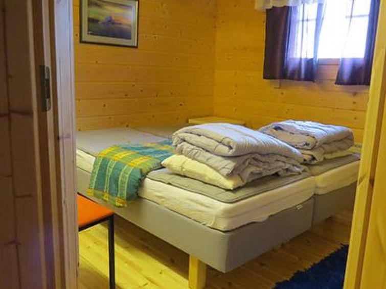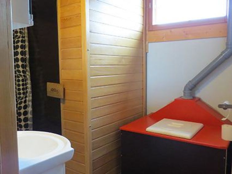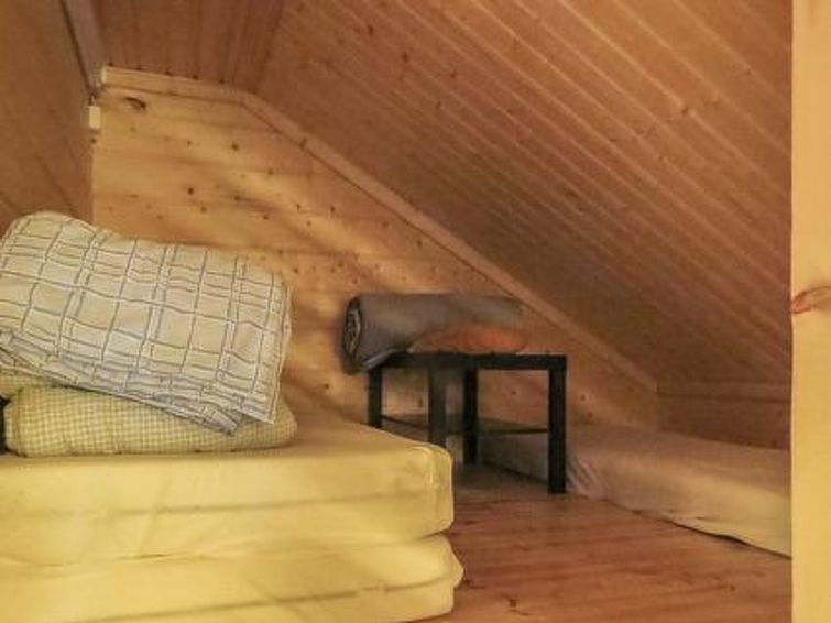 170 km north-west of Helsinki. Log cottage not next to any lake 2011, living room/kitchen, bedroom 2 beds, washroom with shower and eco-toilet, infra red sauna (many controls, also a radio), sleeping loft (sloping ceilings, highest point 155 cm) with 3 mattresses.
