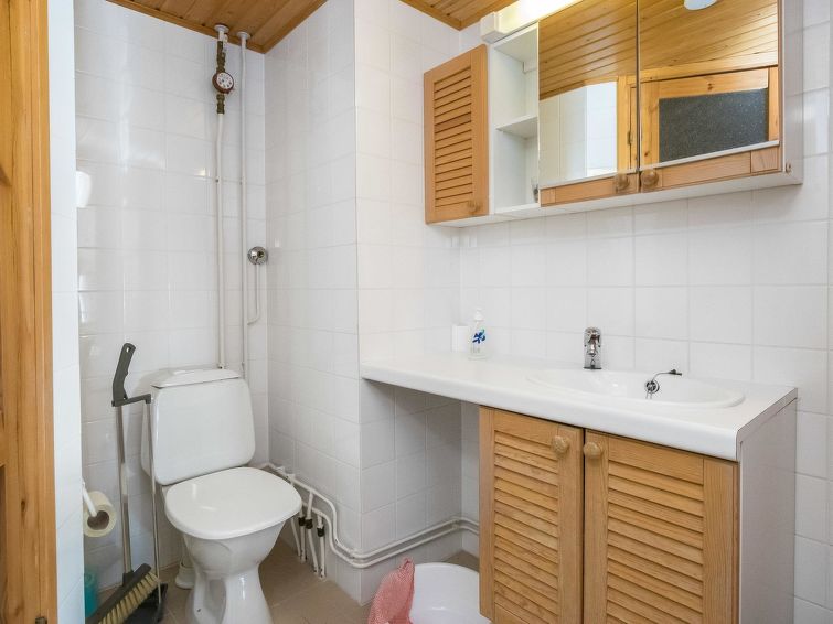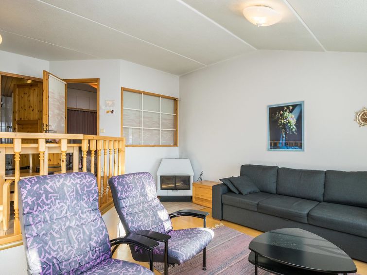 Fireplace is not in use. Ukkohalla: Tourism centre located by Lake Syväjärvi, with an information centre, store, restaurant, spa, slope centre, snowmobile tracks, ski tracks, programme services, beach (further information at www.ukkohalla.fi). Distance to the Ukkohalla services 1.5 km. Kajaani airport 86 km, Oulu 170 km, Helsinki 650 km, bus stop Hyrynsalmi 18 km, railway station Kontiomäki 66 km. Pets prohibited, view over the slopes and Lake Syväjärvi.