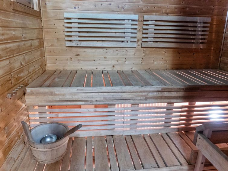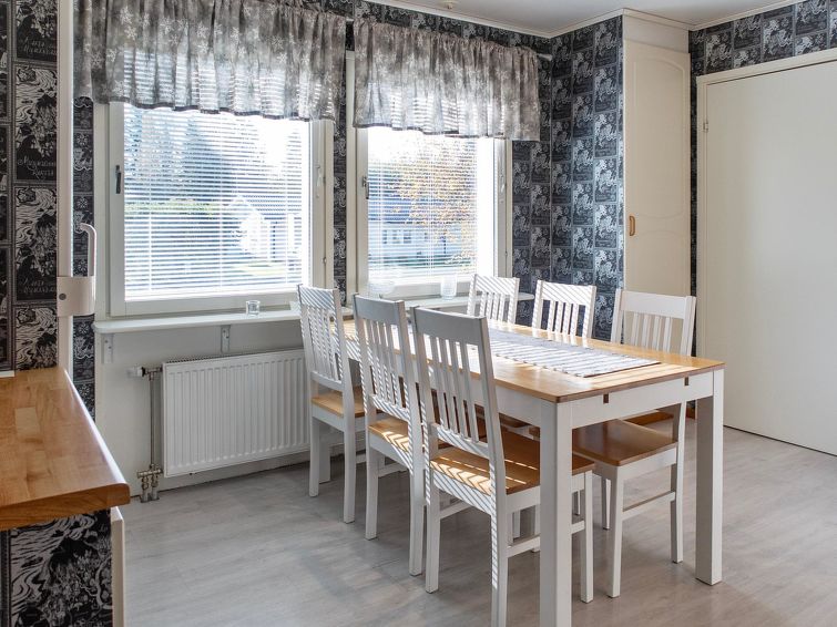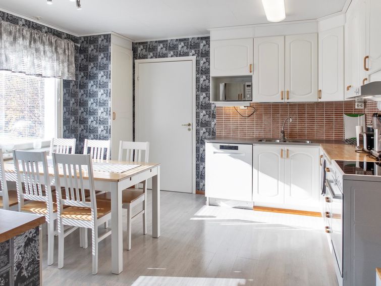 A holidayhouse completed in 2007 in Vuokatti, near the Holiday Club Katikulta spa. Area 122 m² on one floor. Kitchen, living room, fireplace. 4 bedrooms: 1 with double bed, bedroom 2: two separate beds, bedroom 3-4 separate bed for 1. Sleeps for 6 in total. Utility room, sauna (electric stove), washroom/toilet and separate toilet. Porch and terrace. A campfire place in the backyard.