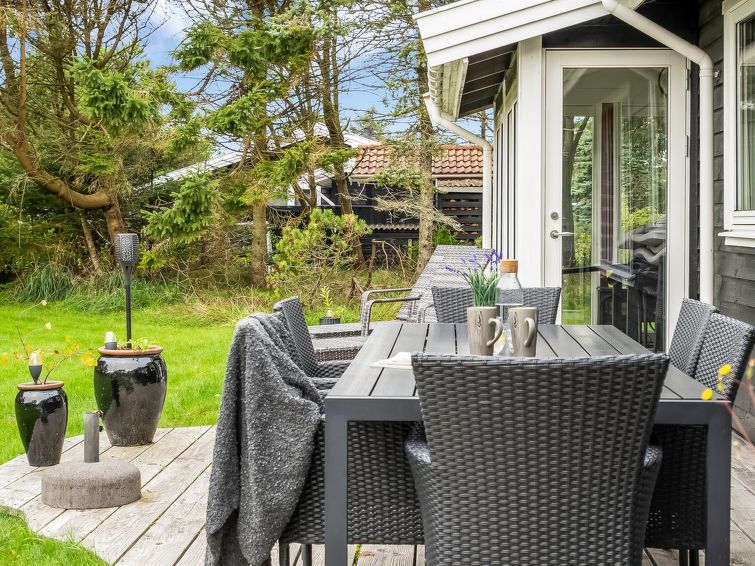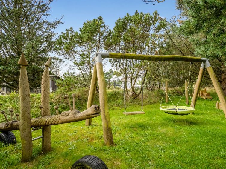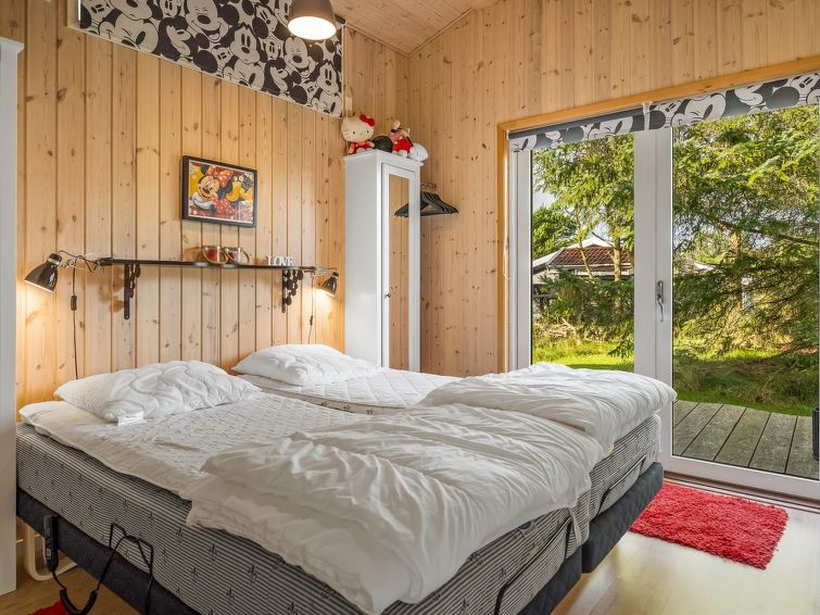 "Ulli" - 1.6km from the sea in NW Jutland", 3 rom hus 82 m2. Passer for 5 voksne + 1 barn. Stue med, TV, radio og CD-spiller. 1 rom med, 1 sovemulighet. Studio 1 rom med med, 2 sovesoffaer og 1 dobbeltseng. Kjøkken (stekeovn, oppvaskmaskin, 4 induksjonskomfyr, mikrobølgeovn, frys). Dusj/WC, boblebad. Terrasse 10 m2, dekt. Drivhus. Fasiliteter: høy barnestol barneseng (ekstra). Internett (trådløs LAN [WLAN]). Max kjæledyr / hund tillatt 1 kjæledyr / hund tillatt.