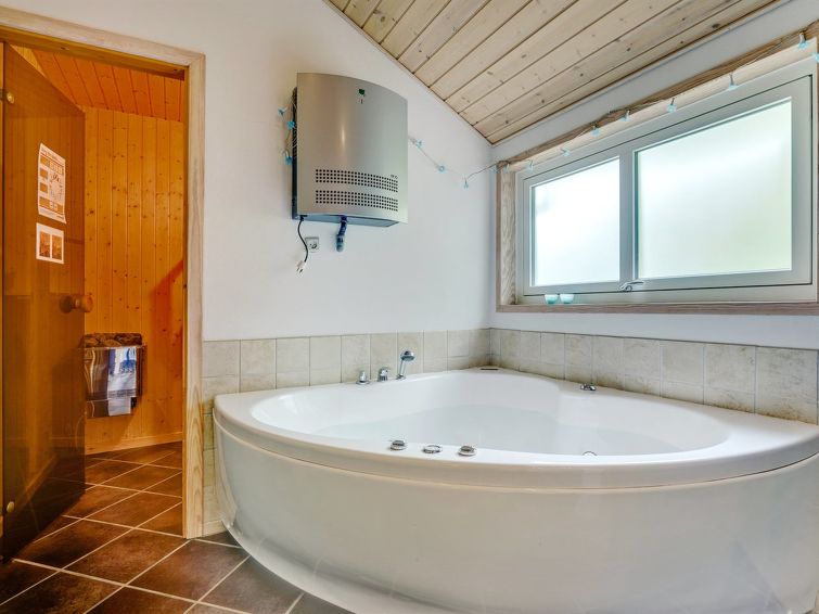 "Ulrikke" - 12km from the sea in Western Jutland", 3 rom hus 120 m2. Passer for 6 voksne + 1 barn. Stue med, TV, radio, CD-spiller og DVD. 1 rom med, 1 dobbeltseng. 1 rom med, 1 dobbeltseng. 1 rom med, 1 dobbeltseng. Kjøkken (stekeovn, oppvaskmaskin, 4 keramiske kokeplater, mikrobølgeovn, frys). 2 dusjer/WC, boblebad. Terrasse 12 m2, dekt. Fasiliteter: høy barnestol barneseng (ekstra). Internett (trådløs LAN [WLAN]). Vennligst merk: røykfri bolig.
