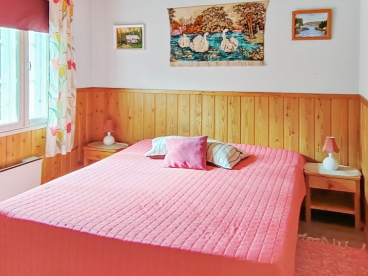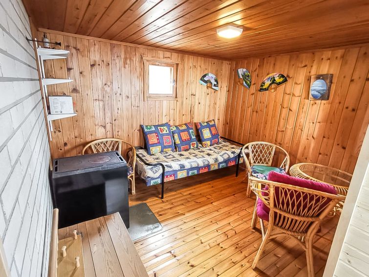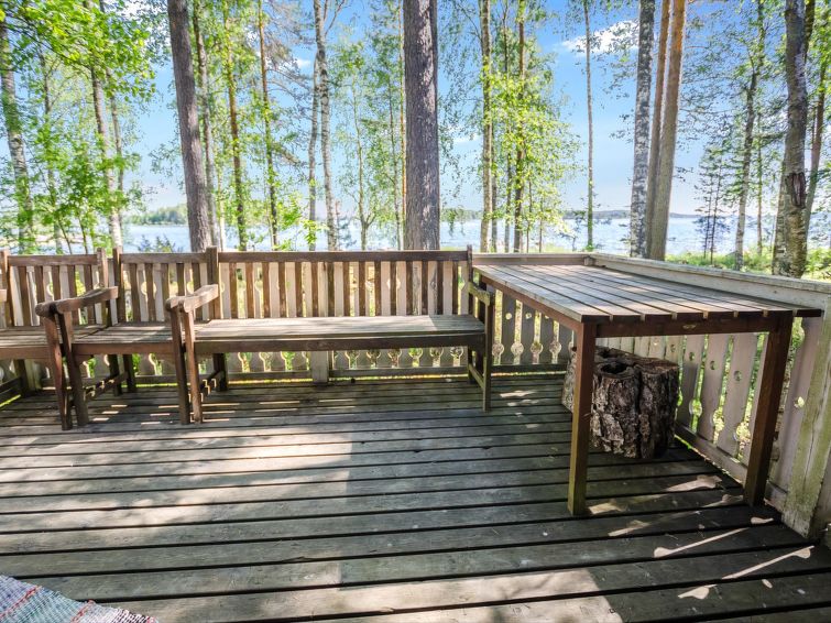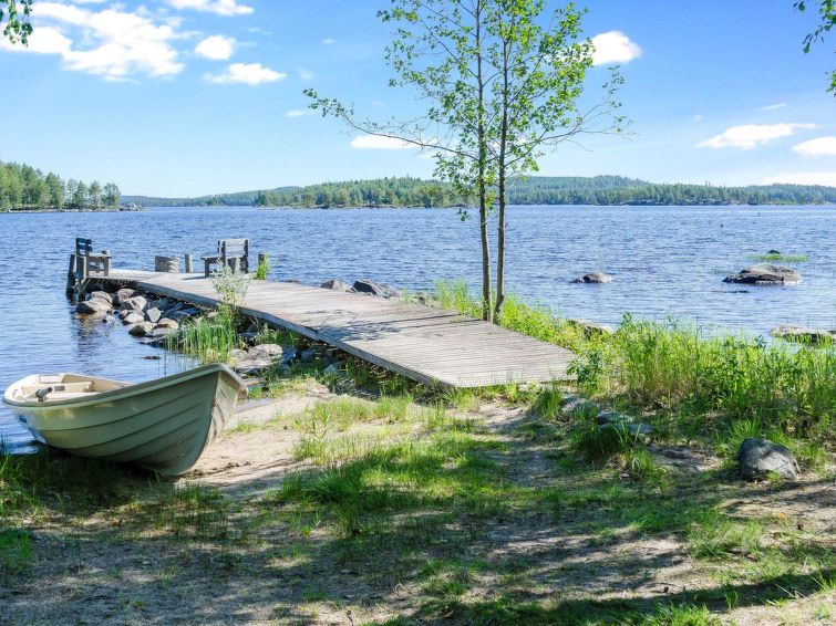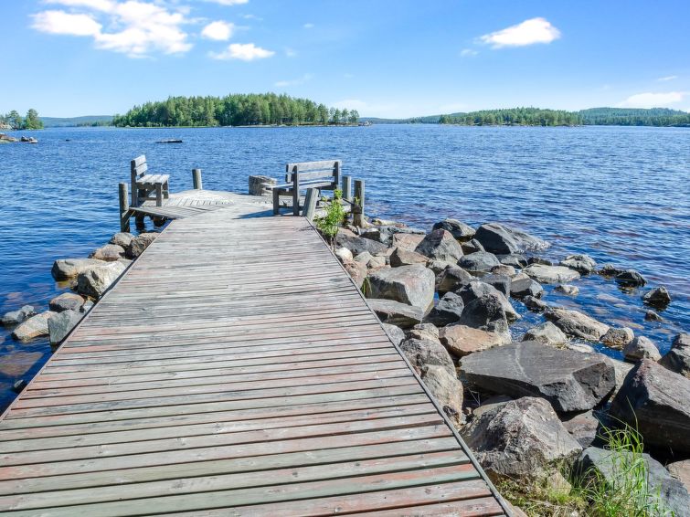 100 km north of Joensuu, lake Pielinen 30 m, hard, sandy bottom, own boat. Wooden cottage 1995, living room/ kitchen, bedroom with double bed, bedroom with double bed, sleeping loft with double bed and two single beds, washing room with toilet and shower, roofed terrace 25 m². Internet 4 G.