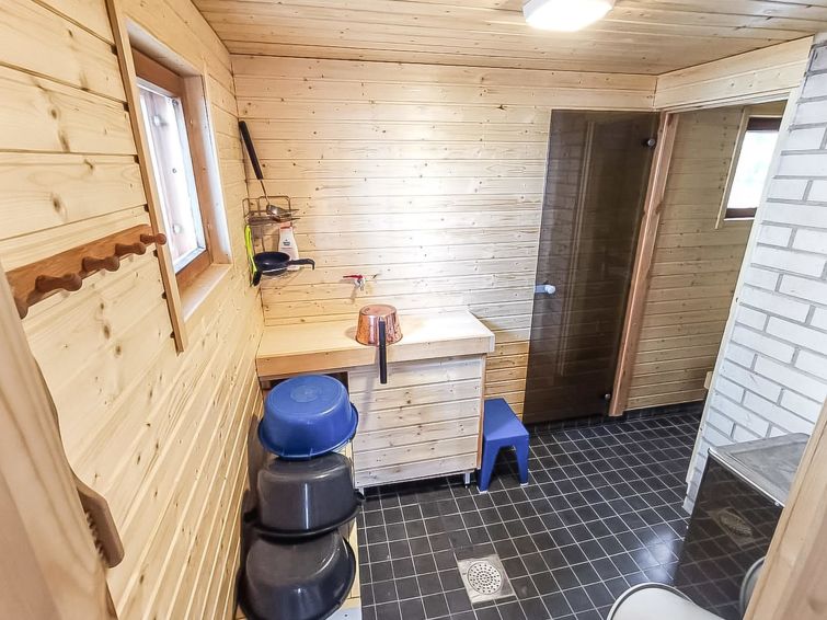 Lake shore sauna, 20 m², cold running water from spring, under floor heating, dressing room with stove, electric light. The distance to the shore 20 m. Woodshed/storage. Spacious cottage on a sunny plot with flat courtyard. Separate sauna.
