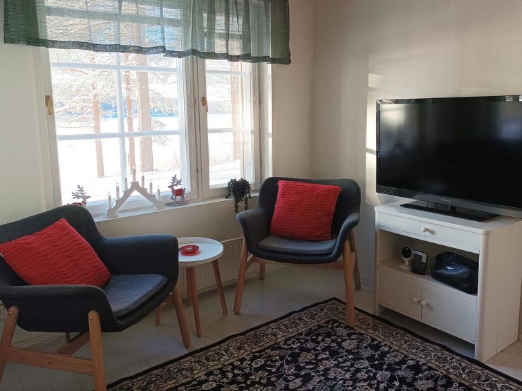58 km to the north from Rovaniemi, lake Alajärvi 25 m (length 3 km, width 600 m), deep beach, hard sand bottom, own boat, pier.