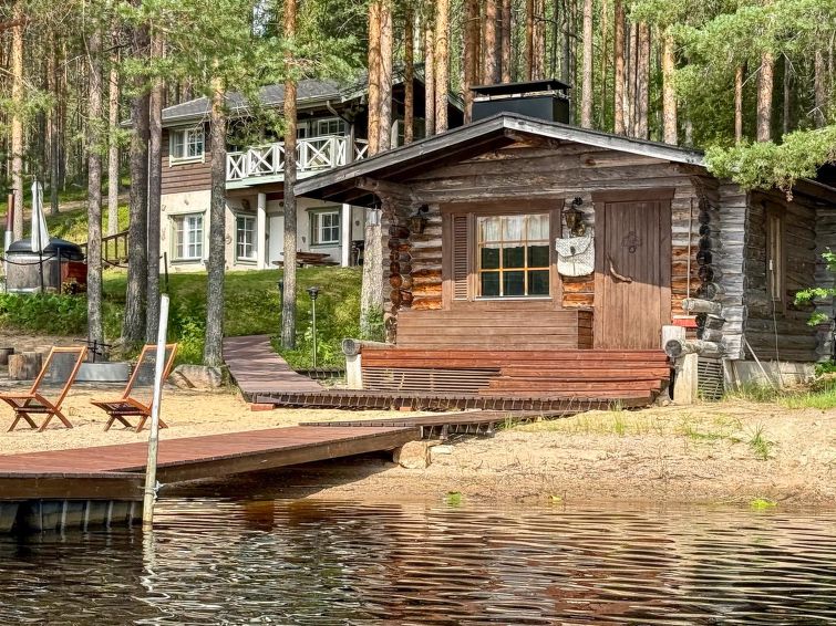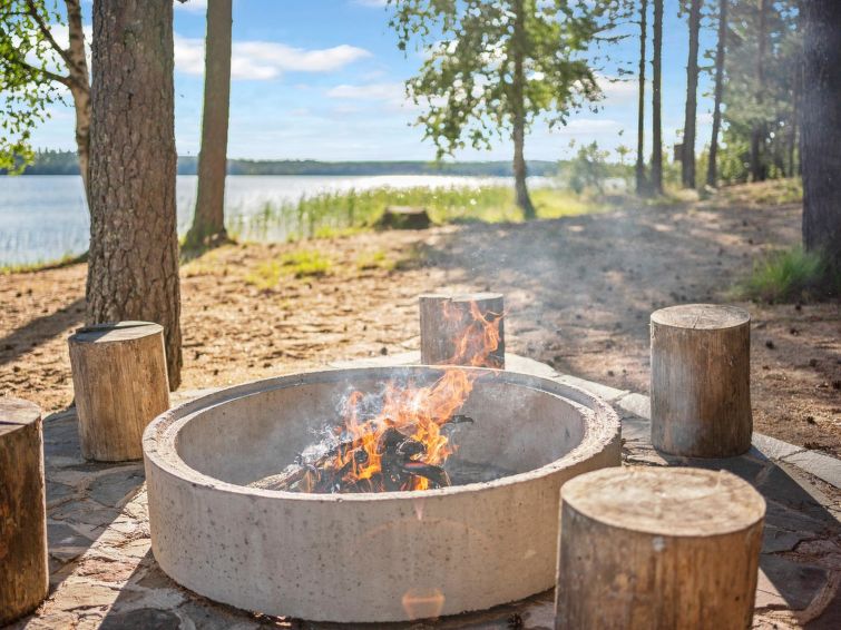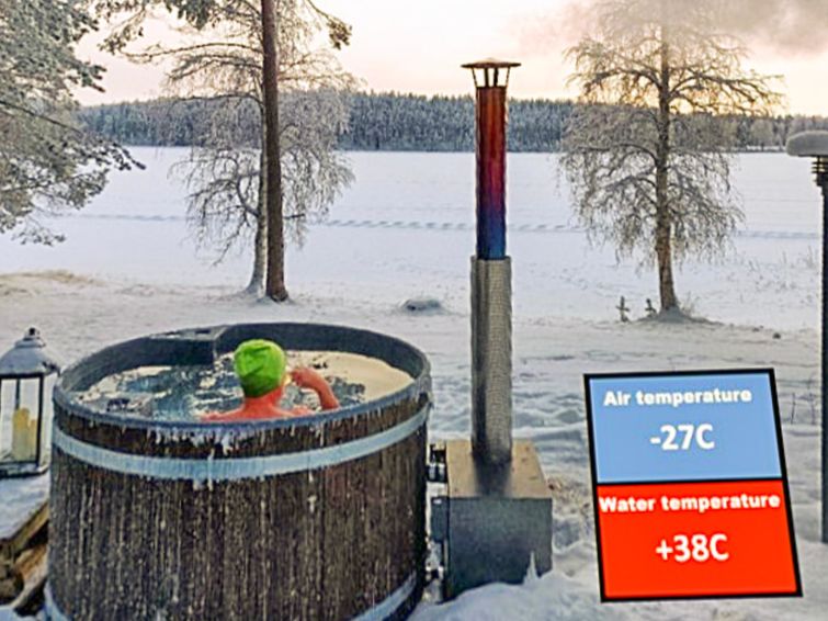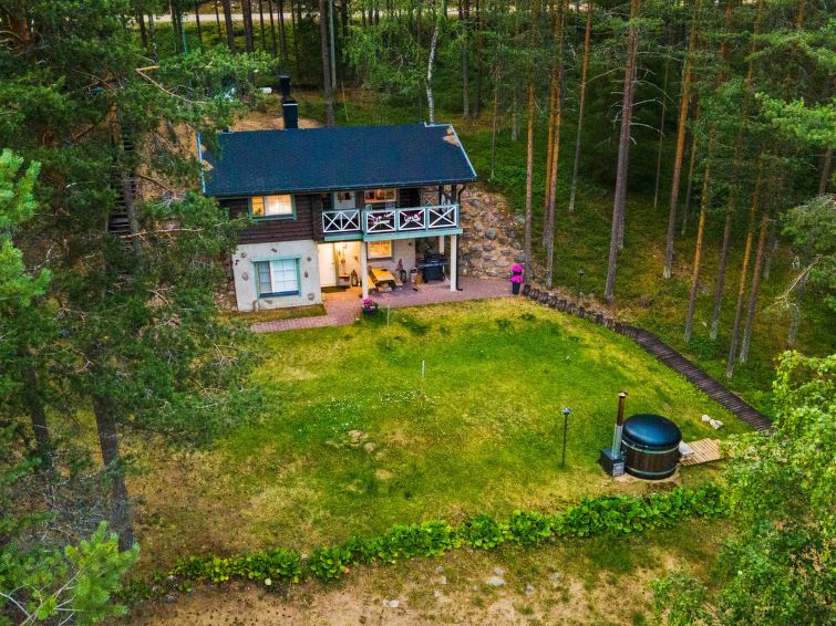 You can rent the hot tub from the owner for additional price by separate agreement. Price 200€/1-4 days and 300€/5-7 days. Caretaker fills the hot tub up and begins to heat it. Customer takes care of further heating and can use the hot tub during the whole rental period (water won't be changed). During winter the customer takes care of that it doesn't freeze and after usage empties it. Cozy cabin by the lake. Electric outboard motor and 5 hp outboard motor for rent. Also, possibility for renting fishing rods, jigs, ice drill and other fishing gear. Yard games, dart board, croquet, Finnish throwing game Mölkky and badminton court.