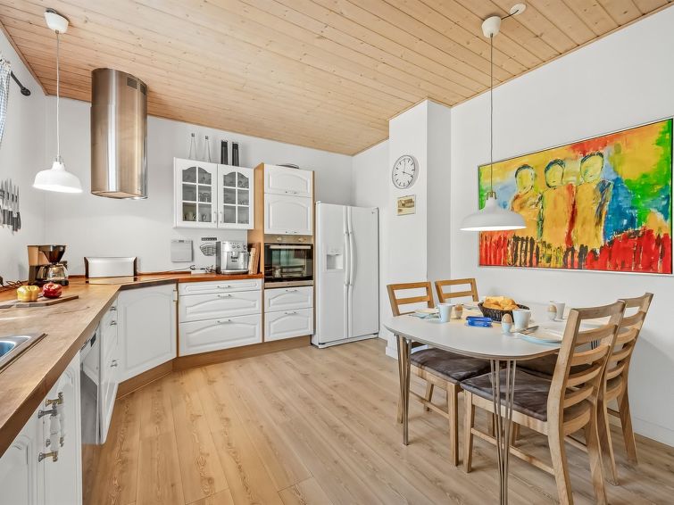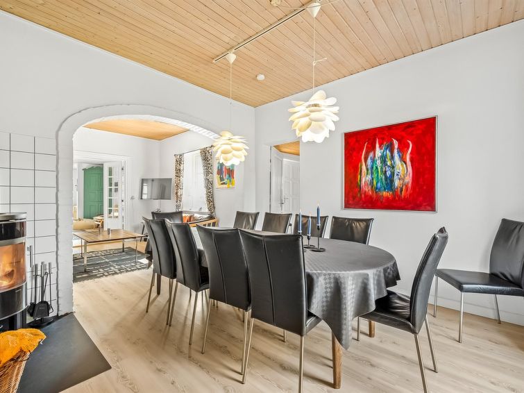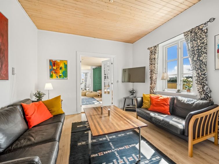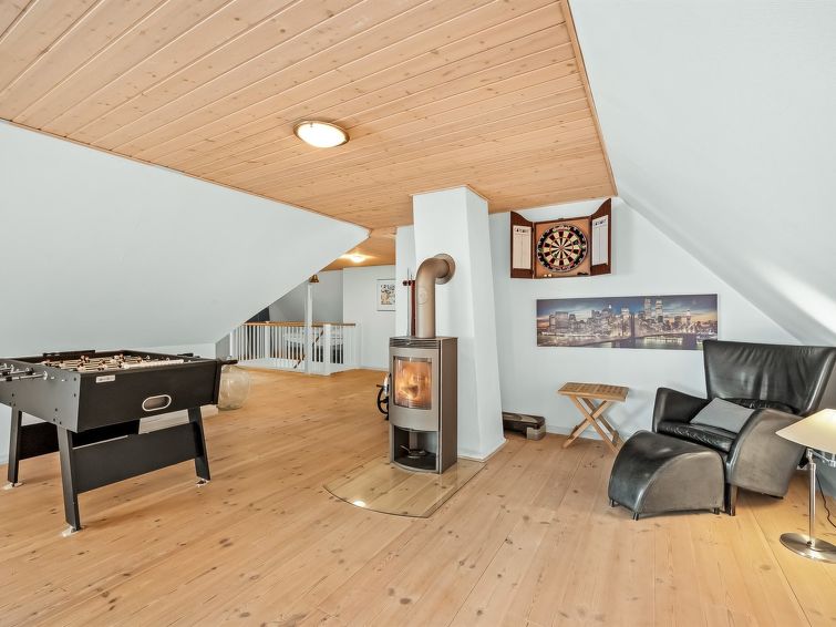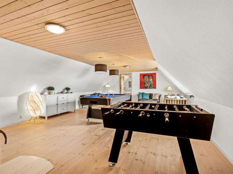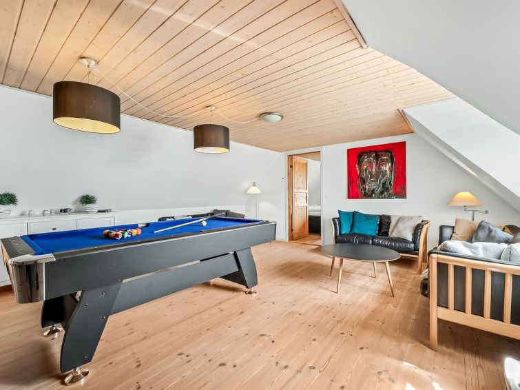 "Urte" - from the sea in Western Jutland", 6 rom hus 330 m2. Passer for 12 voksne + 1 barn. Stue med, TV, radio, stereoanlegg og DVD. 1 rom med, 1 dobbeltseng. 1 rom med, 1 dobbeltseng. 1 rom med, 1 dobbeltseng. Kjøkken (stekeovn, oppvaskmaskin, 4 keramiske kokeplater, mikrobølgeovn, frys). 2 dusjer/WC, boblebad. øverste etasje: 1 rom med, 1 dobbeltseng. 1 rom med, 1 dobbeltseng. 1 rom med 2 senger. Av viken. Fasiliteter: høy barnestol barneseng (ekstra). Internett (trådløs LAN [WLAN]). Vennligst merk: røykfri bolig. Max kjæledyr / hund tillatt 1 kjæledyr / hund tillatt.