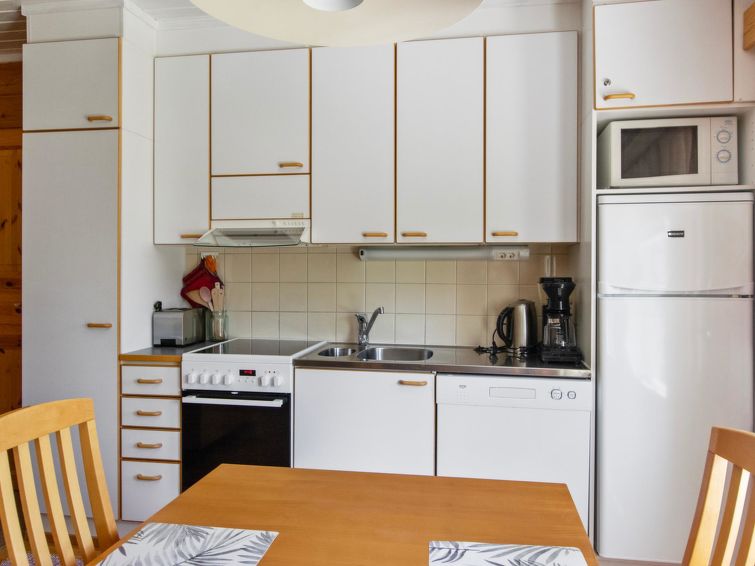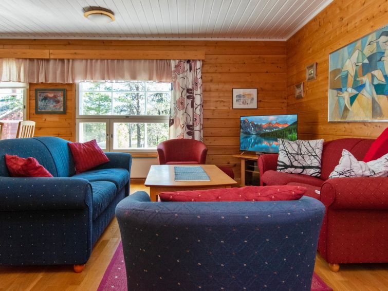 A spacious the end apartment of a terraced house in the Etelärinne I area. Saariselkä services only 0.7 km away. View from the terrace to Kelolampi, a small bond.