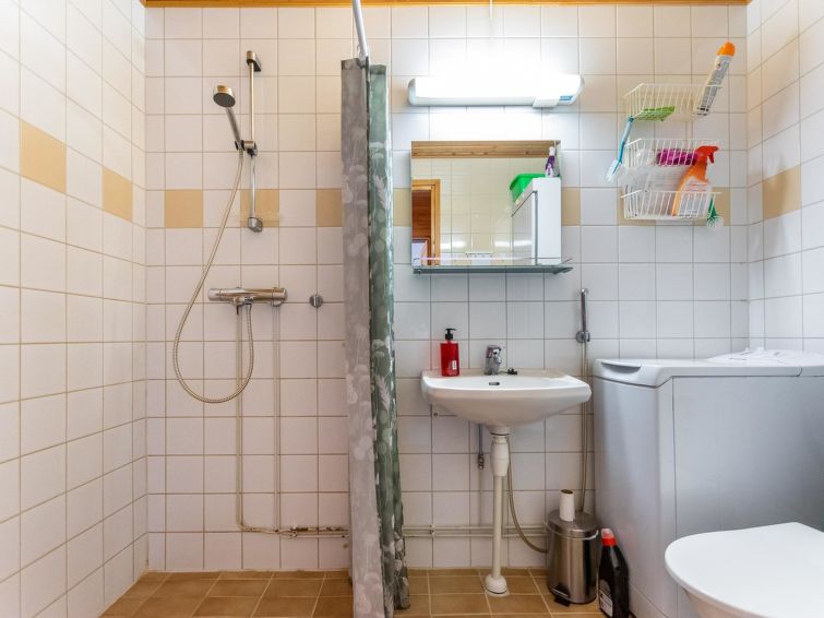 The 40-square-meter apartment has a kitchen/livingroom, a bedroom, a washroom/toilet, a sauna, a terrace and a small storage room In addition, shared with other apartments ski maintenance room with ski lubrication rack, iron and infrared heater. The locked maintenance room can be accessed with the apartment key, and the trash cans are also in the same building.