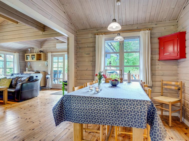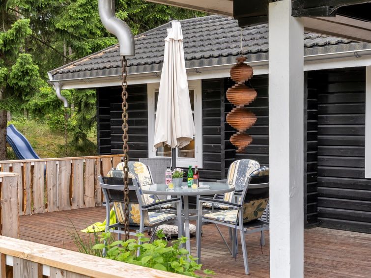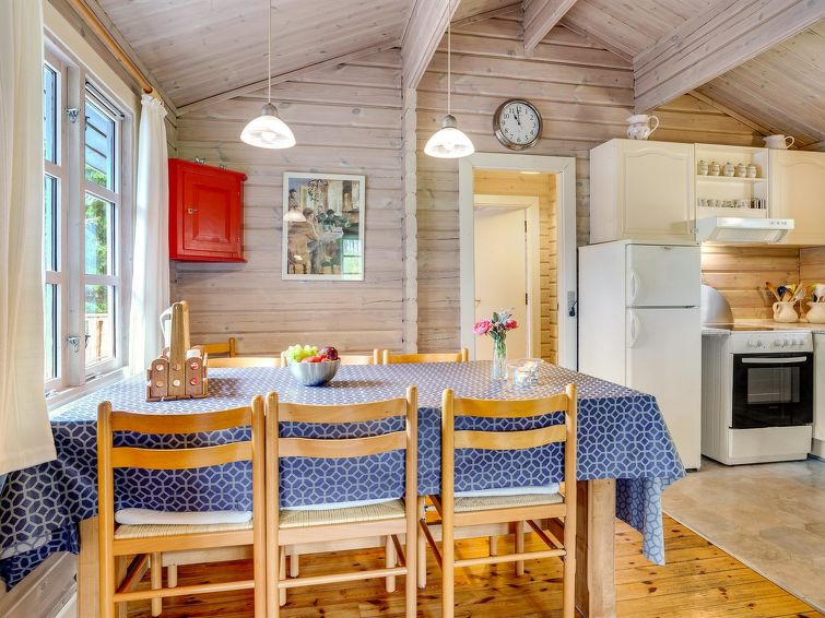 Enmannsbolig, bygget i 1975. 1.2 km fra sjøen. Privat: tomt 4'879 m2. Terrasse (60 m2), lekeplass (huske). I huset: vaskemaskin. Parkering ved hbrukt. Daglivarehandel 5 km.