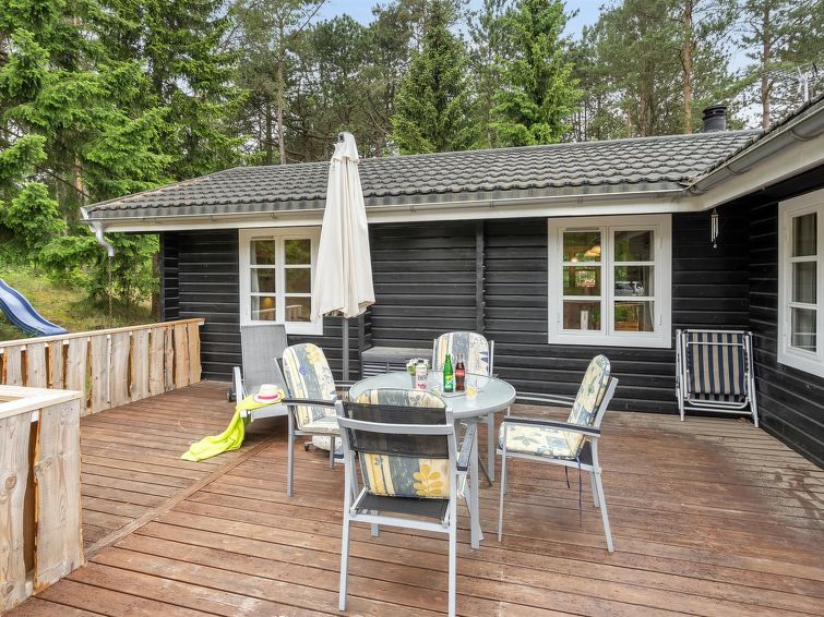 "Uuno" - 1.2km from the sea in NE Jutland", 3 rom hus 77 m2. Passer for 6 voksne. Stue med, TV, radio, CD-spiller og DVD. 1 rom med, 1 dobbeltseng. 1 rom med, 1 x 2 køysenger. 1 rom med, 1 dobbel sovesoffa. Kjøkken (stekeovn, oppvaskmaskin, 4 keramiske kokeplater, mikrobølgeovn, frys). Dusj/WC. Terrasse 20 m2, dekt. Fasiliteter: høy barnestol barneseng (ekstra). Internett (trådløs LAN [WLAN]). Vennligst merk: røykfri bolig. Max kjæledyr/små hunder tillatt 2 kjæledyr/små hunder tillatt.