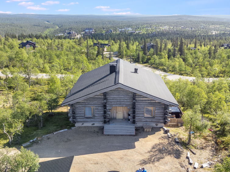 The 344-square-meter silver log cabin has a kitchen, living room, 8 bedrooms, fireplace room/meeting room, dressing room, washroom, sauna, 8 showers/toilets and a terrace. In addition, a ski maintenance room with a ski lubrication rack.