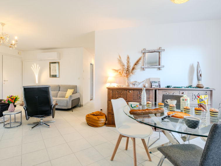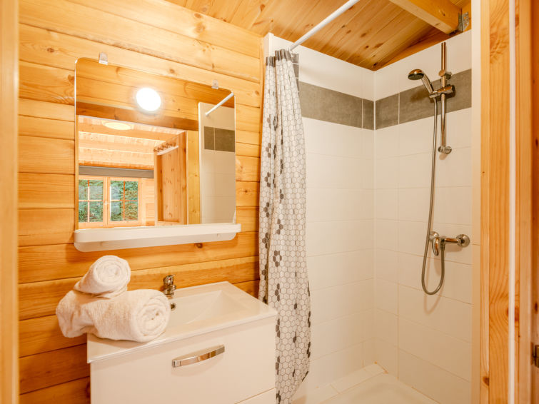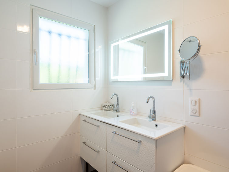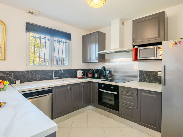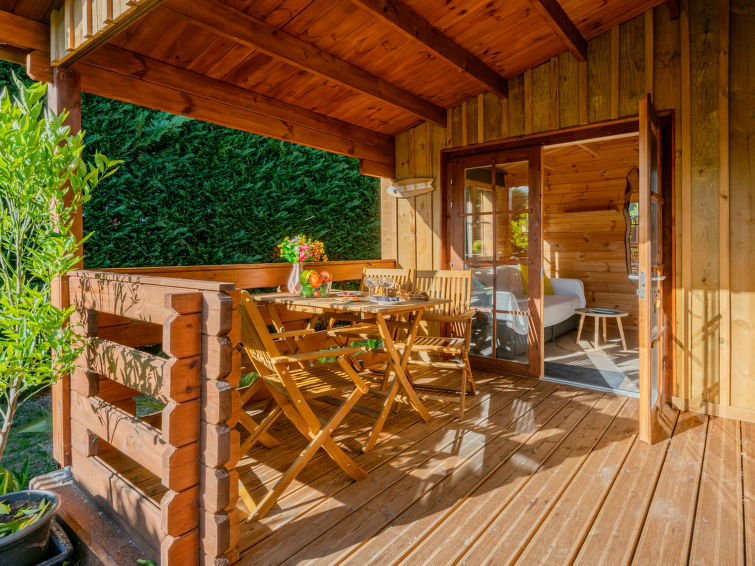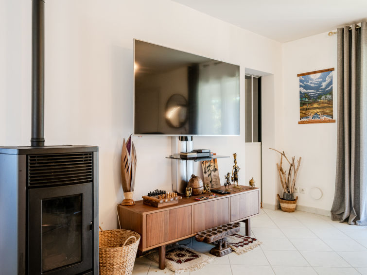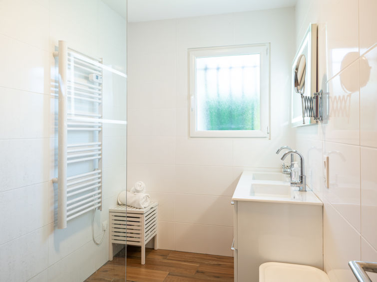 4 rom hus 90 m2. Vakkert møbler: stue/spisestue med, TV, internasjonale TVkanaler og flatskjerms TV. Utgang til hagen, til terrassen. 1 rom med, 1 dobbeltseng (1 x 140 cm, lengde 190 cm). 1 rom med, 1 dobbeltseng (1 x 140 cm, lengde 190 cm). 1 rom med, 1 dobbeltseng (1 x 140 cm, lengde 190 cm). Åpent kjøkken (ovn, oppvaskmaskin, 3 keramiske kokeplater, vannkoker, mikrobølgeovn, frys, elektrisk kaffemaskin, Internet(filtre), ekstra, raclettegrill (ost)). Dusj, sep. WC. Oppvarming. Fasiliteter: vaskemaskin, strykejern. Internett (trådløs LAN [WLAN], gratis). 1 lite kjæledyr / liten hund tillatt.