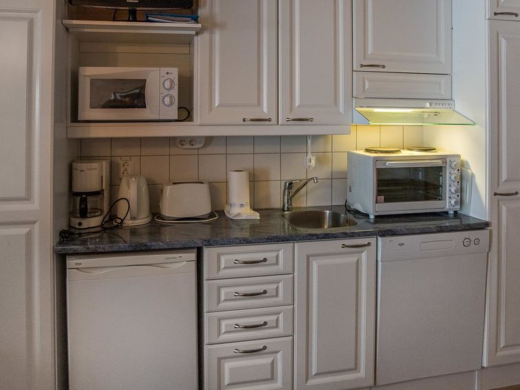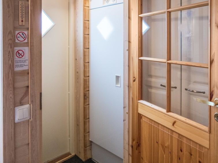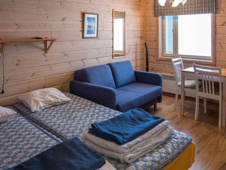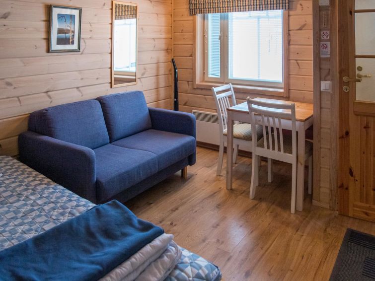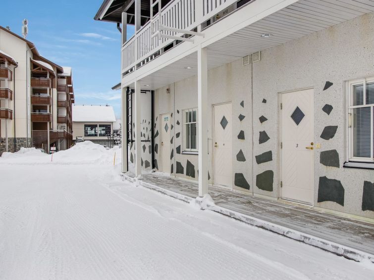 40 km north-east of Kolari, lake Ylläsjärvi 4 km, swimming beach 5,5 km. Apartment in an apartment hotel for 4 people, build 2005. Livingroom/kitchen with 2 beds, electric sauna, shower/toilet. There is no baking oven in the apartment. A cozy apartment in Ylläsjärvi village, in the heart of Sport Resort Ylläs. View over to Ylläsjärvi village. Slopes, skiing tracks, hiking routes and night-time activities easily accesible from the apartment. No pets allowed, however apartment is not suitable for allergic persons.