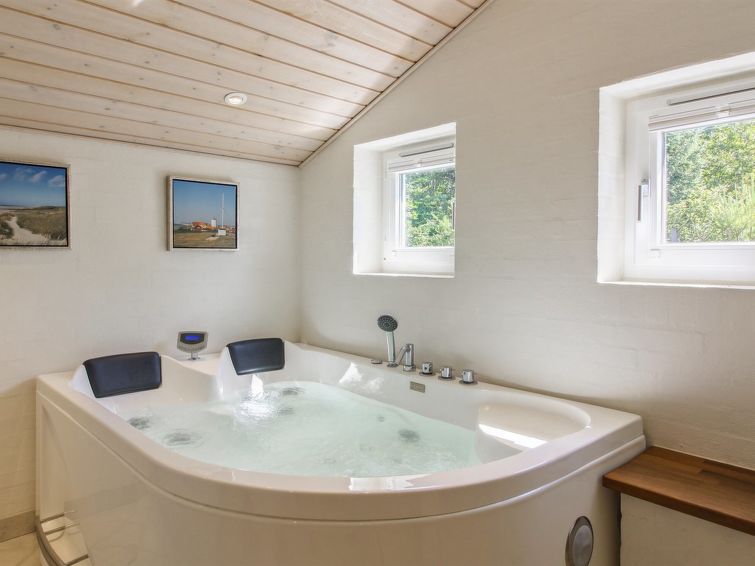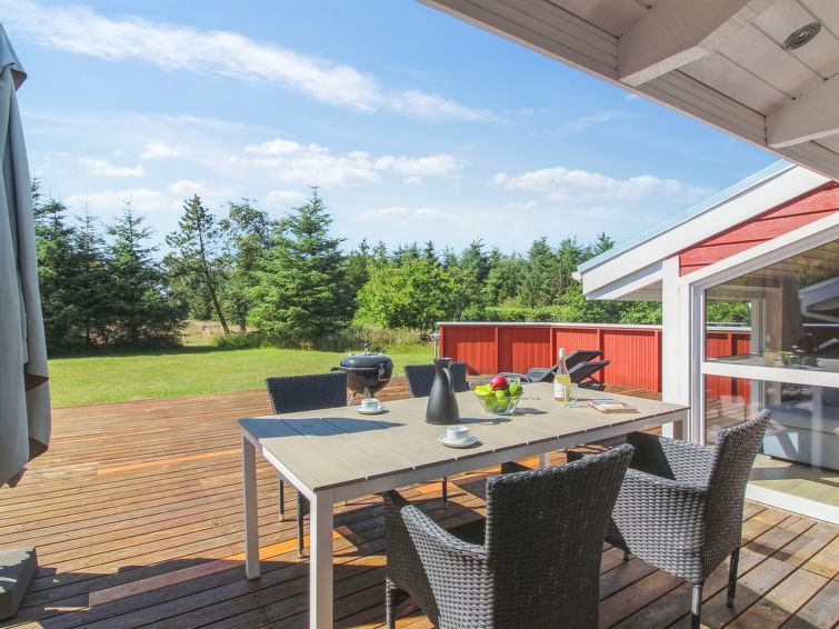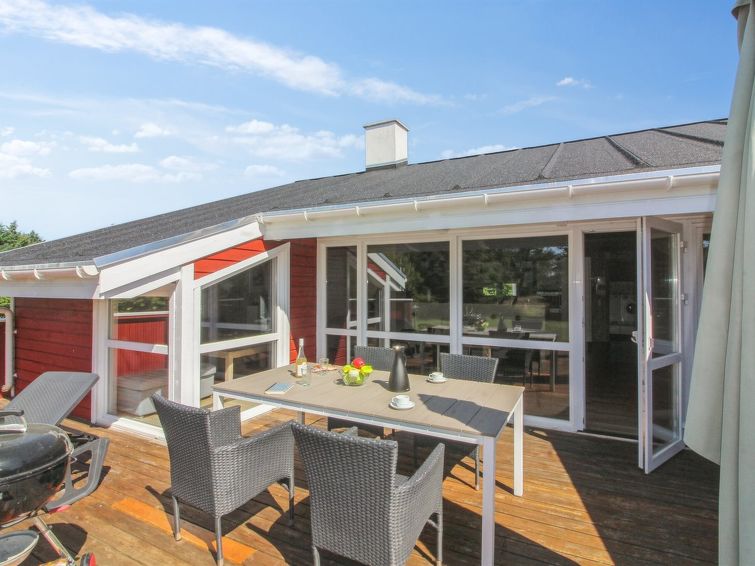 "Valda" - 1.5km from the sea in NW Jutland", 4 rom hus 120 m2. Passer for 6 voksne + 1 barn. Stue med, TV. 1 rom med, 1 dobbeltseng. 1 rom med, 1 dobbeltseng. 1 rom med 1 seng. 1 rom med 1 seng. Kjøkken (stekeovn, oppvaskmaskin, 4 keramiske kokeplater, mikrobølgeovn, frys). Dusj/WC, boblebad. Fasiliteter: høy barnestol barneseng (ekstra). Internett (trådløs LAN [WLAN]). Vennligst merk: røykfri bolig.
