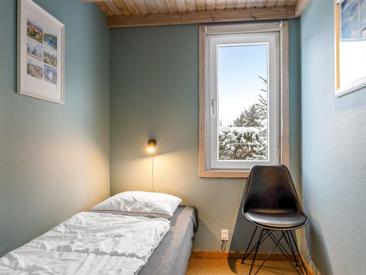 Enmannsbolig, bygget i 2000. 1.5 km fra sjøen. Privat: uberørt tomt 1'600 m2. Terrasse (60 m2), grill. I huset: vaskemaskin, tørketrommel. Parkering ved hbrukt. Bilporten. Daglivarehandel 3 km. Golfbane 8 km. Eieren godtar ikke noen ungdomsgrupper.