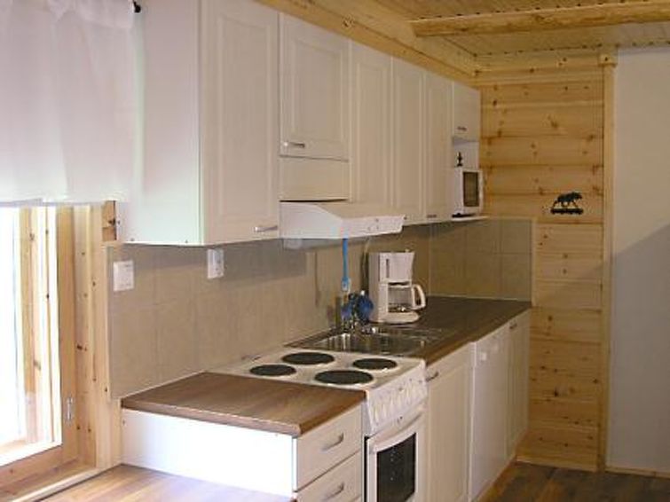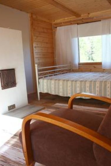 55 km south-west of Kuusamo, L.Kostonjärvi 300 m (length 20 km, width 10 km), path to shore, shallow shore, hard moraine/rock bottom, own boat. Shore exclusively for house. Log house, faced with wooden boards, interior panelling, built 1949, completely renovated and extended 2011. Living room/kitchen convertible sofa/bed, bedroom 2 beds, closed sleeping loft 2 mattresses (steep stairs to loft, area 9,5 m², low room height), sauna, washroom/WC, hall, open porch. Large living room with baking oven, bedroom with small tall oven. Cot and baby feeding chair on request. Grill tepee. Renovated to a high standard, the house is in a quiet location. Level yard area, ideal for children. Yard area has old shed and a small barn. Lake Kostonjärvi offers good fishing opportunities (including stocked lake salmon). Boat slipway 10 km. A good place for a visit is Pyhitysvaara 30 km (with e.g. camp fire places and lean-to’s). Taivalvaara ski resort 35 km, Ruka 70 km, Syöte 70 km.