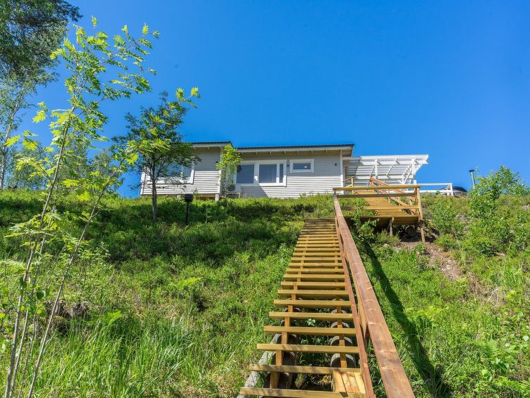 For summer use only: Lakeshore sauna built in 1971, wood-burning stove, dressing room, carrying water. Steep stairs to the lakeside.