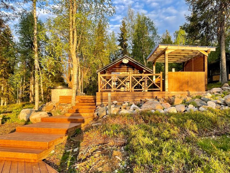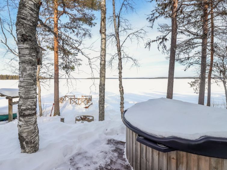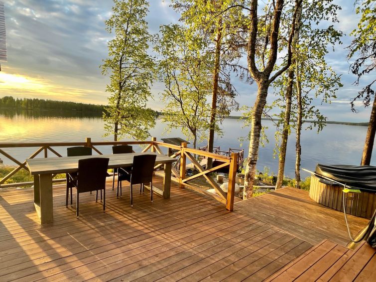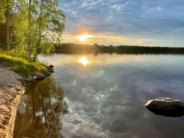 55 km to the east from Rovaniemi, lake Vanttausjärvi 20 m (length 6 km, width 2.5 km), shallow, artificially sanded beach, pier, rowing boat and outboard 5 hp. The outboard motor will be delivered with a full fuel tank and customer also returns the engine with full fuel tank (2-stroke engine).