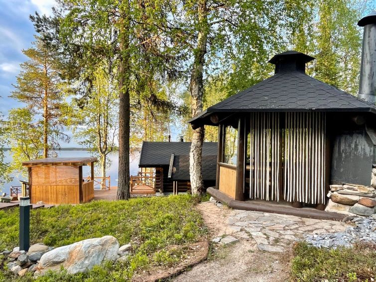 In connection with the lakeside sauna, there is a terrace with summer kitchen. The summer kitchen has a barbecue and terrace has a table for 6 people. In addition, closer to the lake is a separate campfire site. In windy weather or when the rain comes unexpectedly, there is also a covered cooking area with round log-built dining table for 4 people and a magnificent fireplace where you can fry sausages or even make blazed salmon.