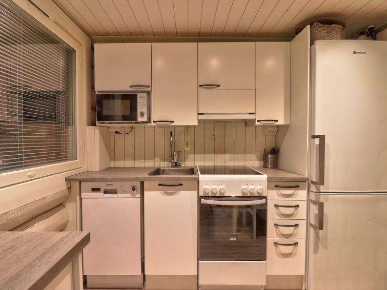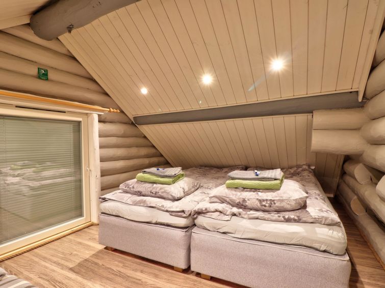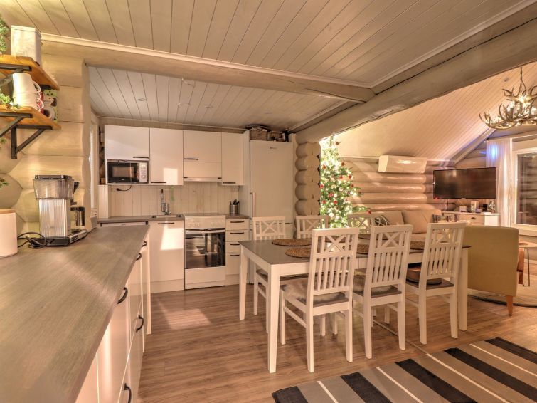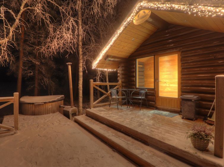 The cabin is equipped with 12-person tableware, coffee maker, kettle, toaster, electric mixer, heated towel rail and air source heat pump, for example. Pump can also be used for cooling in summer. Guests have free 4G Wi-Fi access and TV with Netflix streaming service (in case of rainy days).