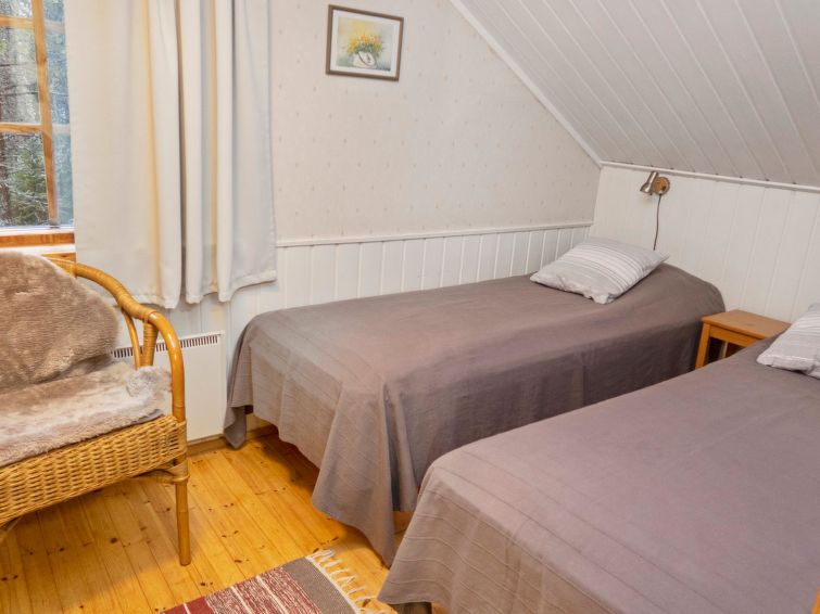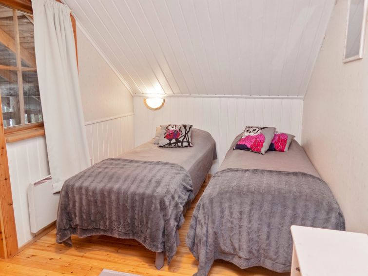 Log cottage built in 2001, bedrooms 1-2 (upstairs): 3 beds in each. Combined kitchen/living room with sofa bed, electric sauna.