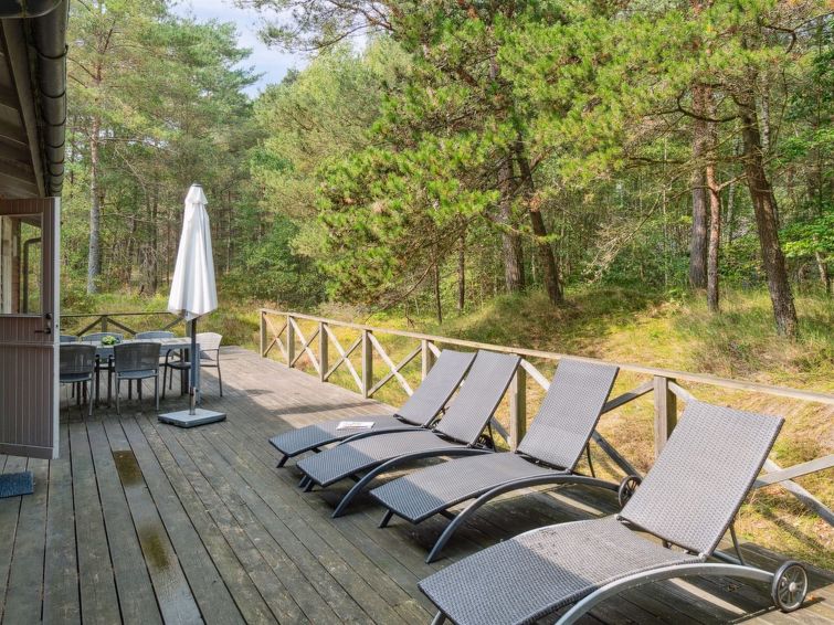 Enmannsbolig, bygget i 1973. 1.2 km fra sjøen. Privat: uberørt tomt 2'000 m2. Grill. I huset: vaskemaskin. Parkering ved hbrukt. Daglivarehandel 4 km. Golfbane 5 km. Eieren godtar ikke noen ungdomsgrupper.