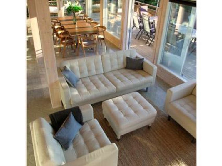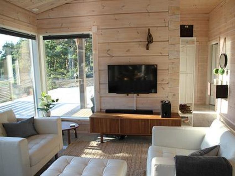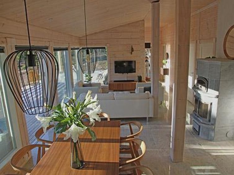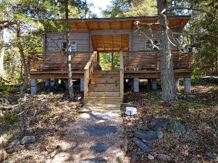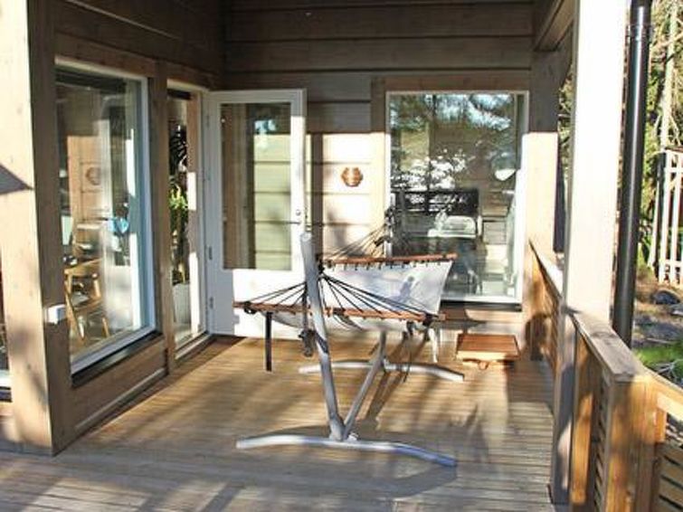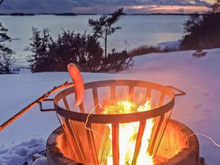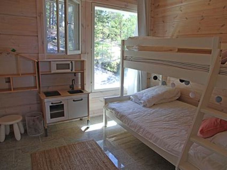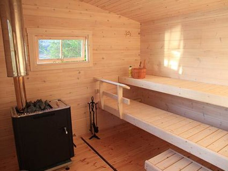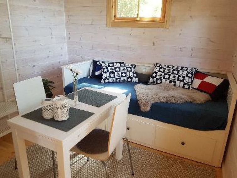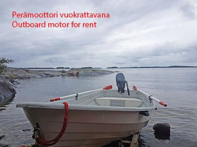 At the beach sauna, with wood-burning stove. Dressing room (sofa bed for 2). There is electric radiator for heating and electric light in the dressing room (by extension lead from the main building). Thickset log house in archipelago of Hiittinen surrounded by solid rock with peaceful plot in its own cove. There is no pier, fishing is possible from the beach with fishing rod. Owner rents out 4 hp outboard motor. Fishing trips for extra price.