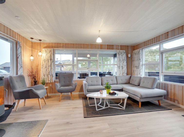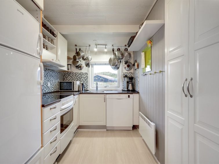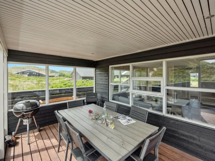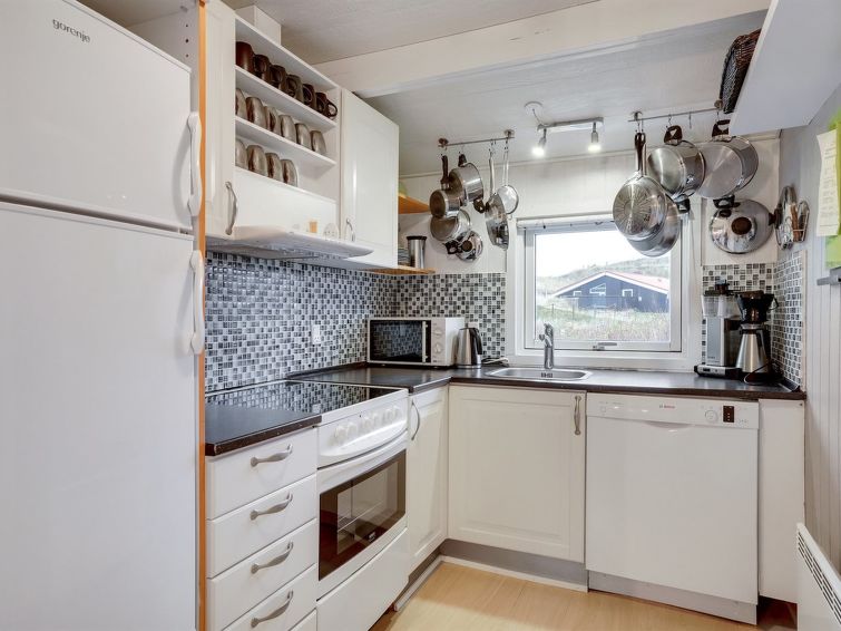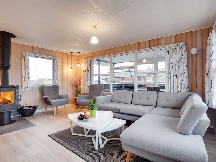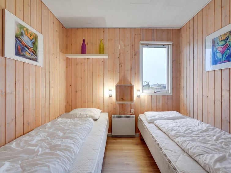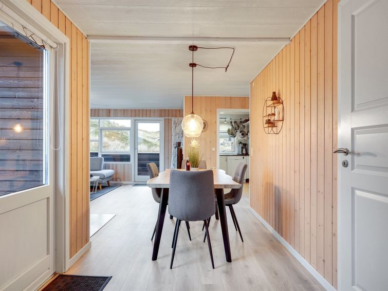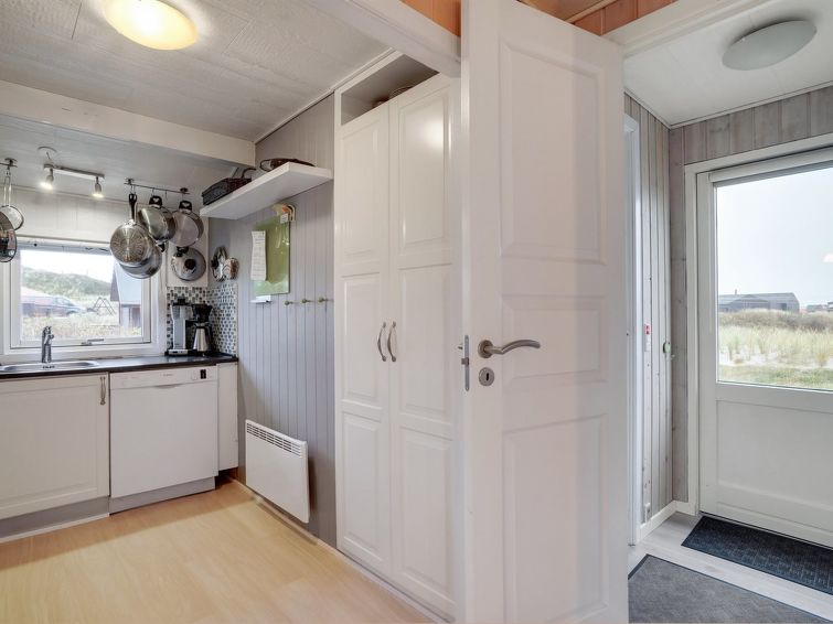 "Veetrikki" - from the sea in Western Jutland", 3 rom hus 72 m2. Passer for 5 voksne + 1 barn. Stue med, TV, radio og DVD. 1 rom med 2 senger. 1 rom med 1 seng. 1 rom med, 1 dobbeltseng. Kjøkken (stekeovn, oppvaskmaskin, 4 keramiske kokeplater, mikrobølgeovn, frys). Dusj/WC. Terrasse 15 m2, dekt. Fasiliteter: høy barnestol barneseng (ekstra). Internett (trådløs LAN [WLAN]).