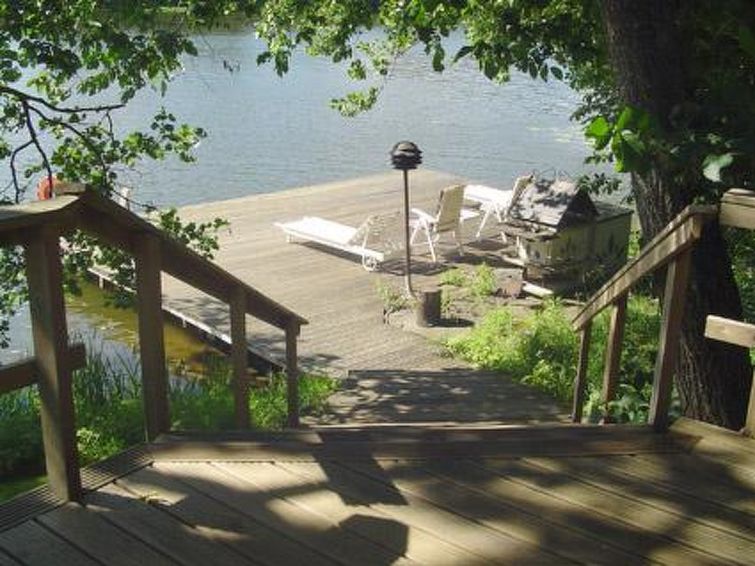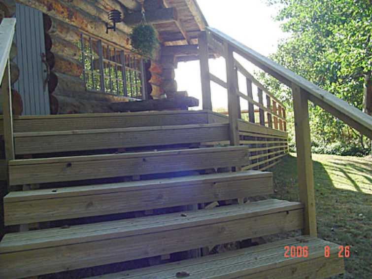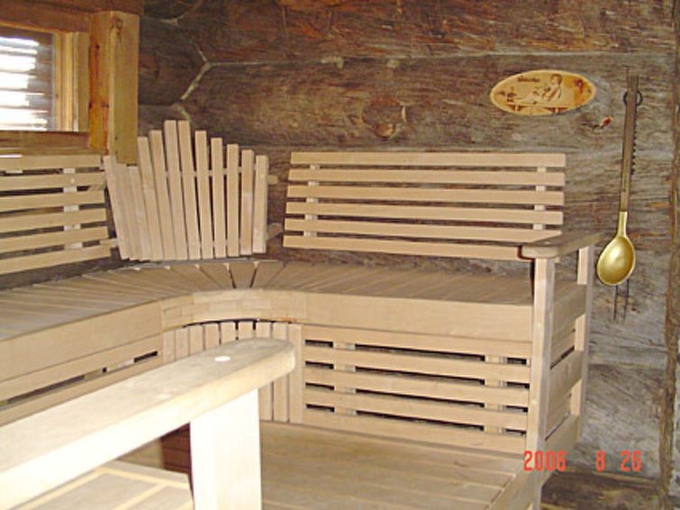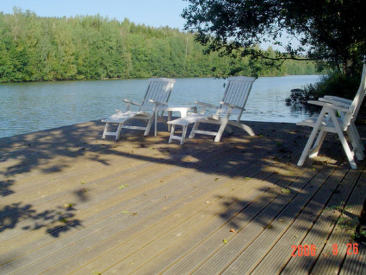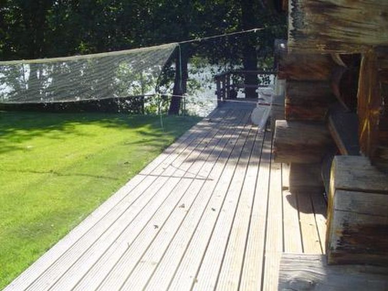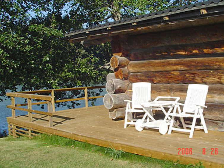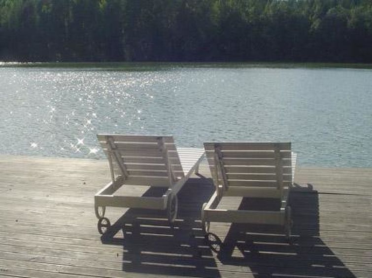 39 km south of Jyväskylä. Lake Veijonjärvi 10 m (length 2 km, breadth 200 m), deep water, soft sanded mud bottom. 2 boats. Log cabin 1975, kitchenette, living room with 2 extra beds, bedroom with 2 beds, dressing room, sauna, verandas on 3 sides of the cottage. Entrance to the toilet from the outside/from terrace. Satellite channels in TV. Gas grill and wood grill. Possibility for horse riding 7 km, nature paths 2 km. Possibility for fishing also at lake Päijänne. Nature trails 2 km, Ottila and Vaaru nature trail.